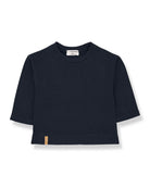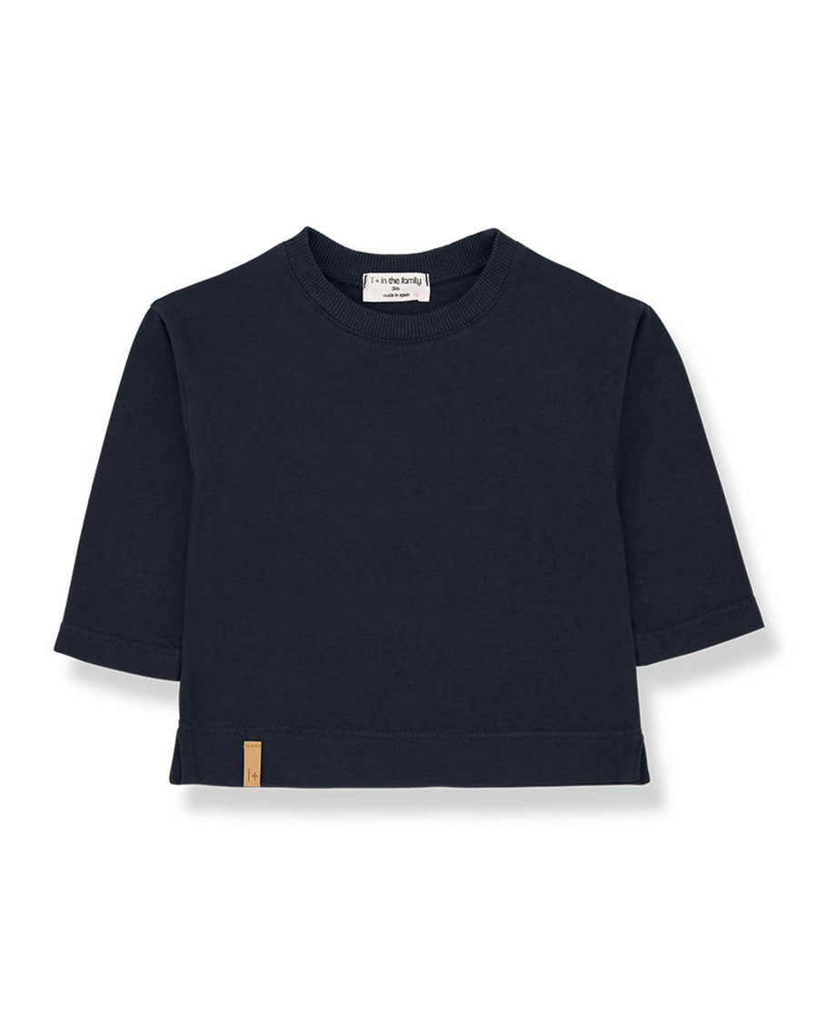Brushed jersey t-shirt with side openings at the hem, ribbed knit collar, and long sleeves.