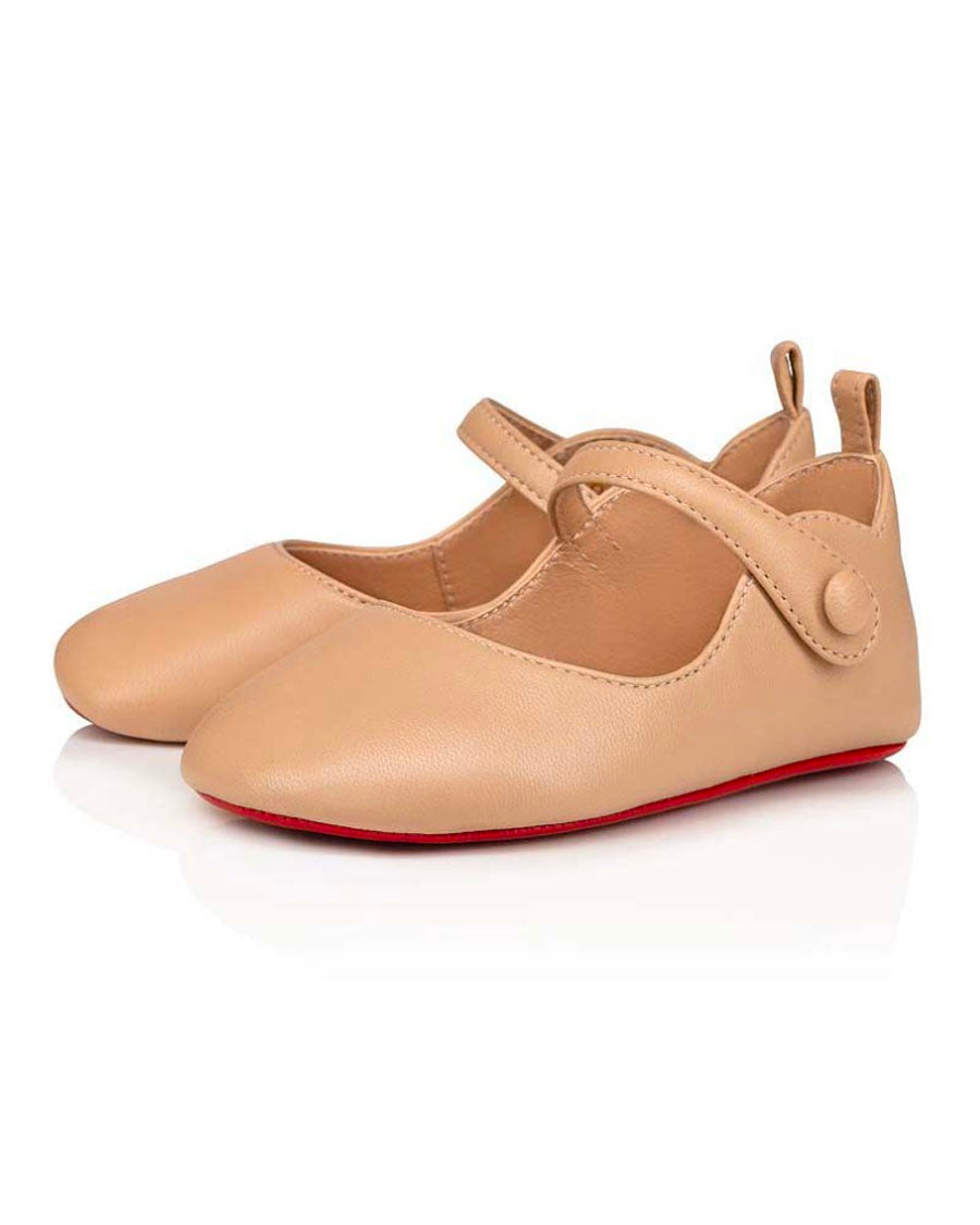 The charming Baby Love Chick ballet flat crafted from the same Nude 1 nappa leather used in the women's capsule collection, has a timeless style. Inspired by the iconic Hot Chick shoe, this Maison Christian Louboutin design has a heart-shaped scallop cut-out on the sides and visible topstitching. An elasticated strap on the vamp and pull-tab on the heel make it easy to slip on and off.