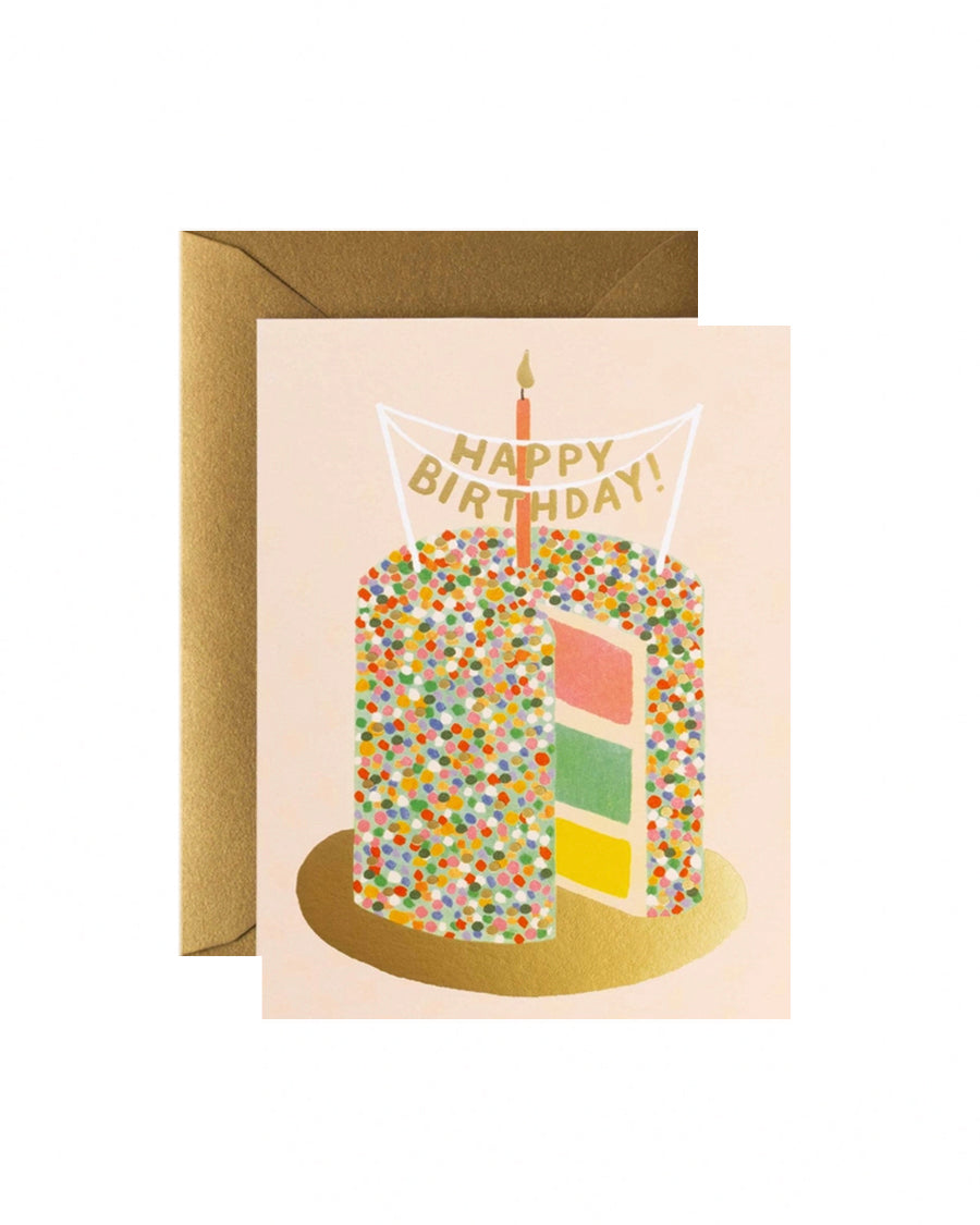 Send your favorite someone a thoughtful message with one of Rifle's birthday cake greeting cards. A blank interior lets your handwritten note take center stage. Made by Rifle Paper Co.