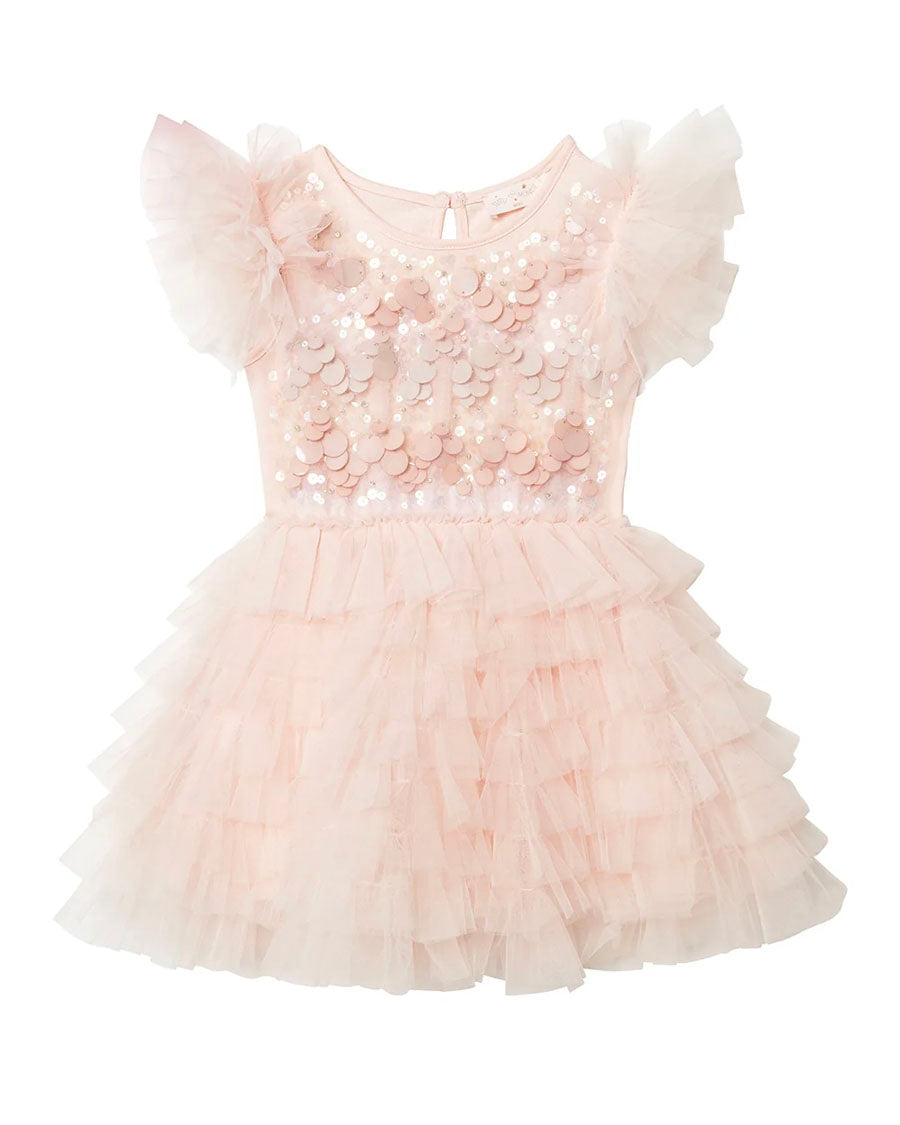 Add a touch of fairy-tale magic to her wardrobe with the Bébé Sugar Fairy Tutu Dress in Pearl! The tank-style bodice is adorned with dazzling embellishments, capturing the light like a sprinkle of fairy dust. Whilst a multi-tiered skirt and tulle ruffle sleeves complete the look, capturing the magic and sweetness of a fairy-tale fantasy!