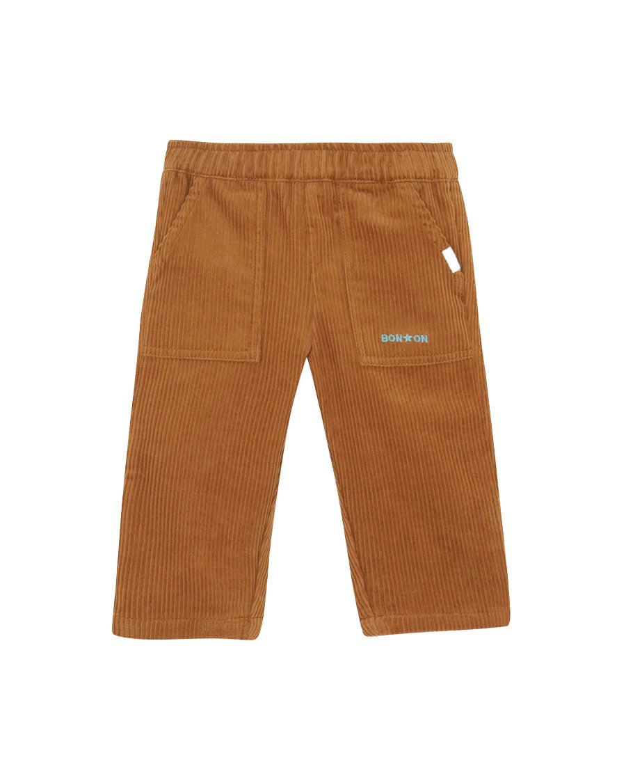 THE Trousers Darius in Corduroy Brown from the "New Barn" collection is perfect for grassy little cowboys! With its elastic size, it ensures comfort and freedom of movement for all their adventures. The small inscription "Bonton" in Grey on the PocketBefore adds a touch of western style. To associate with a Shirt has Check Or a t-shirt for a look full of American authenticity and charm!