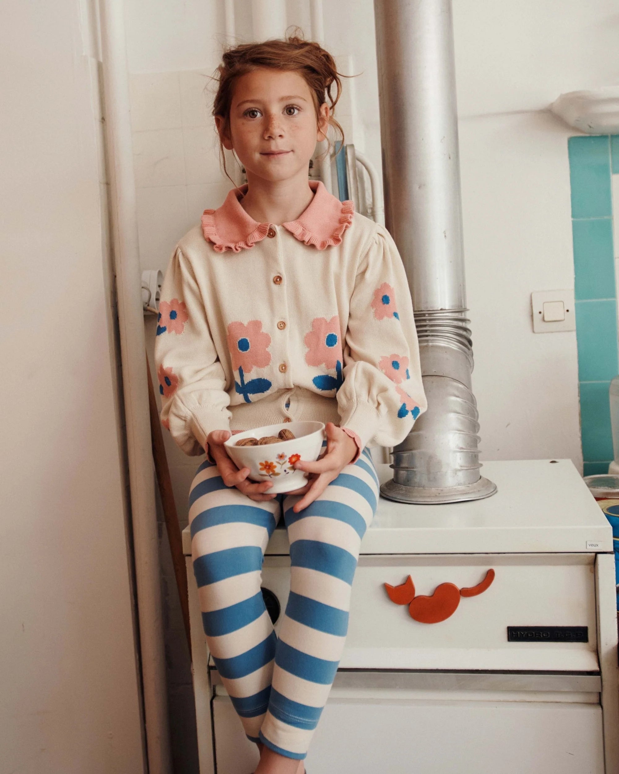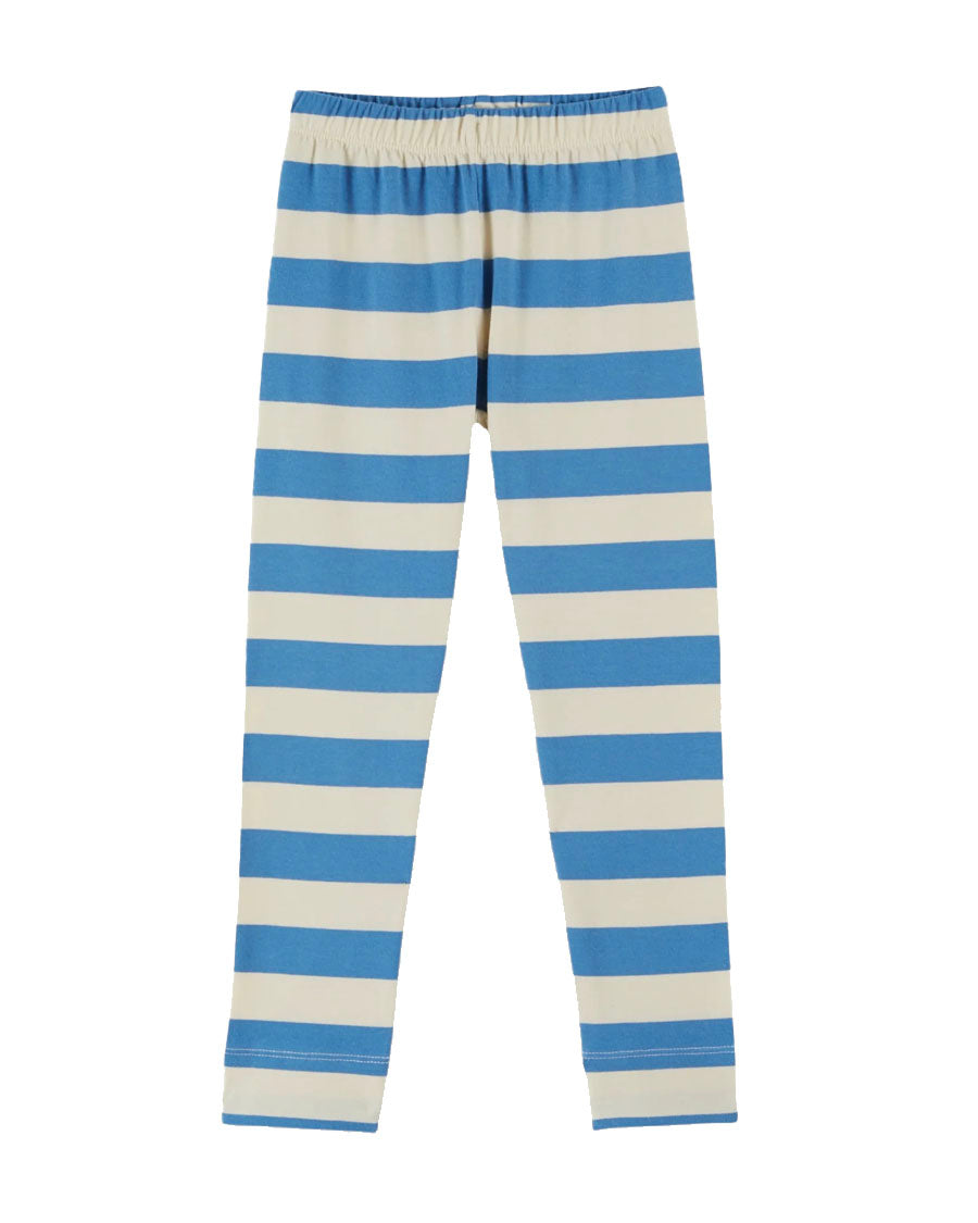 Leggings in organic cotton and elastane jersey with large cream and blue stripes.