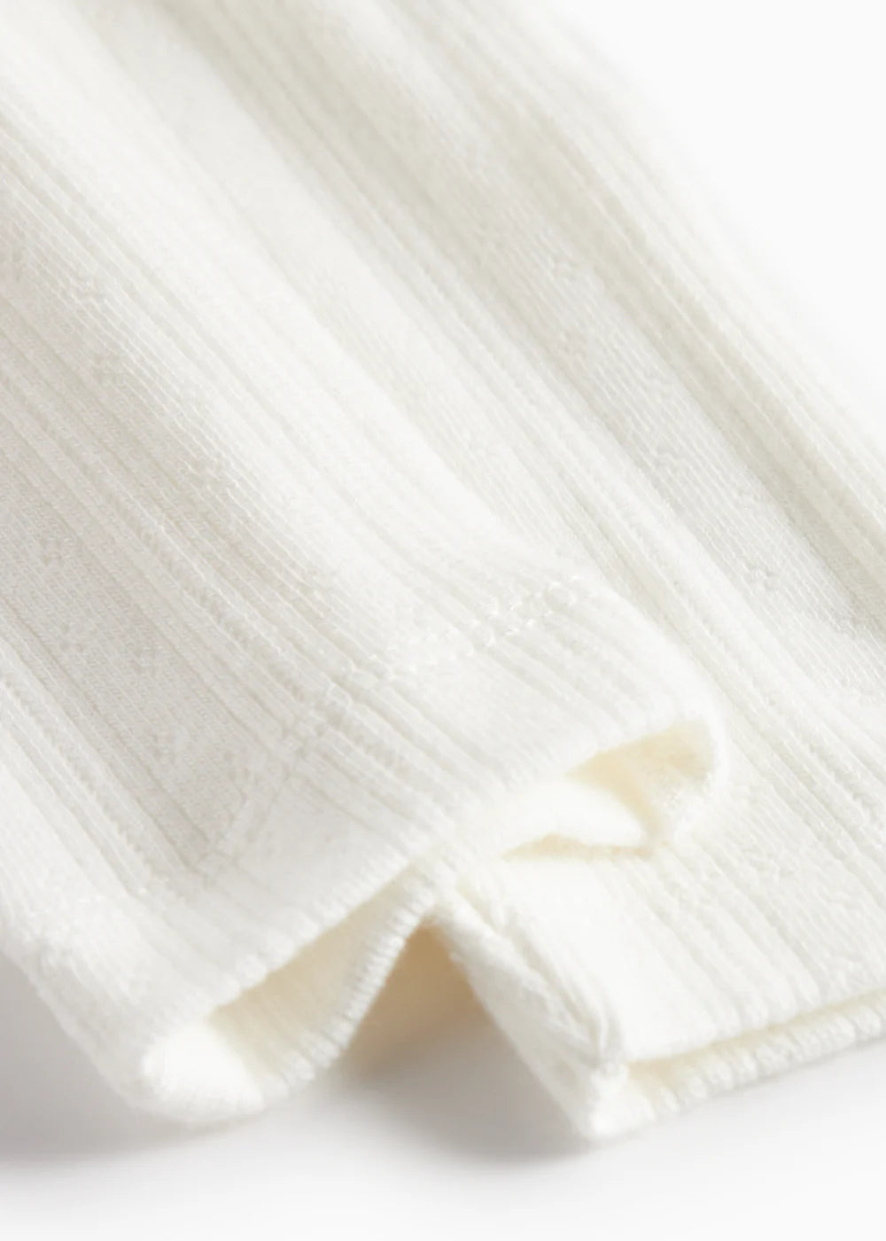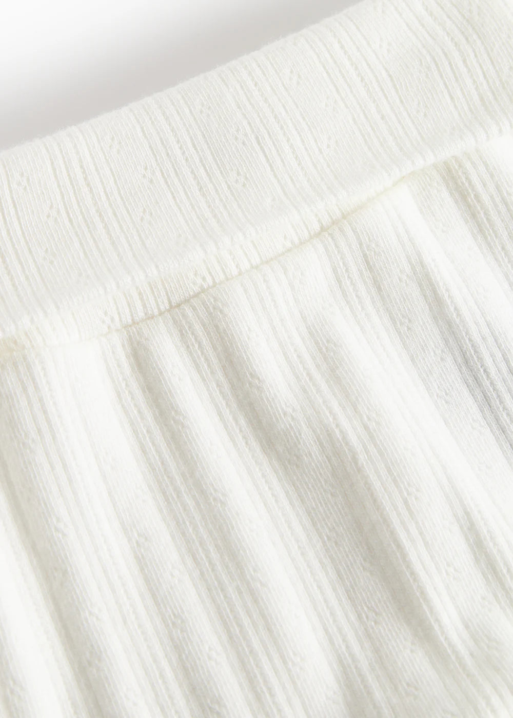 Comfortable pointelle pants for newborns. The pants are soft, stretchy and comfortable to wear.