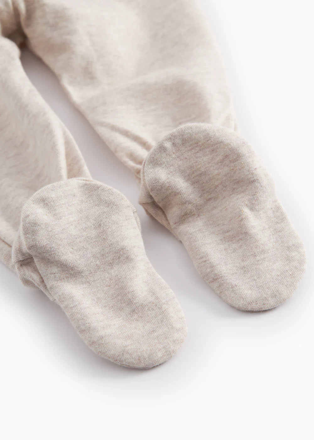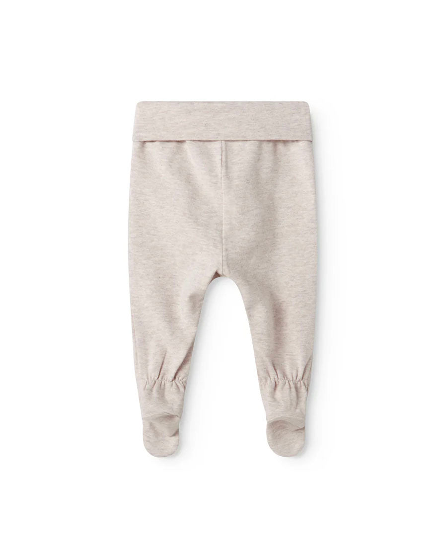 Comfortable pants with feet for newborns. The pants are soft, hold their shape and color, and have elastane in them, which makes them stretchy and comfortable to wear.