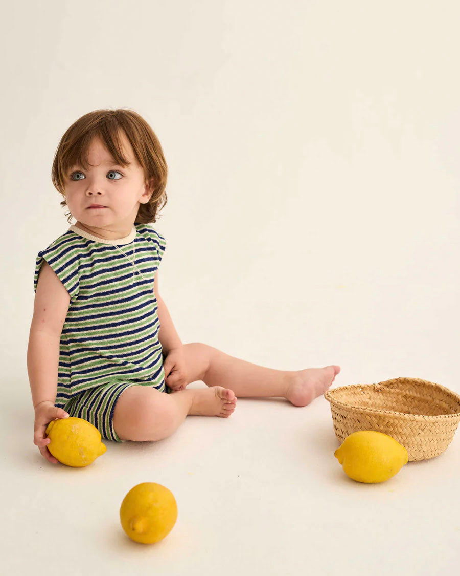 Corey Striped Terry Cloth Jumpsuit - Green/Navy