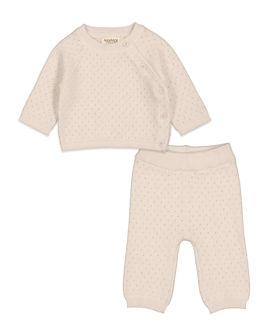 - Pira Knit Pants: Knitted pants for baby with elastic waist. The knitted pants have fine lace pattern details.