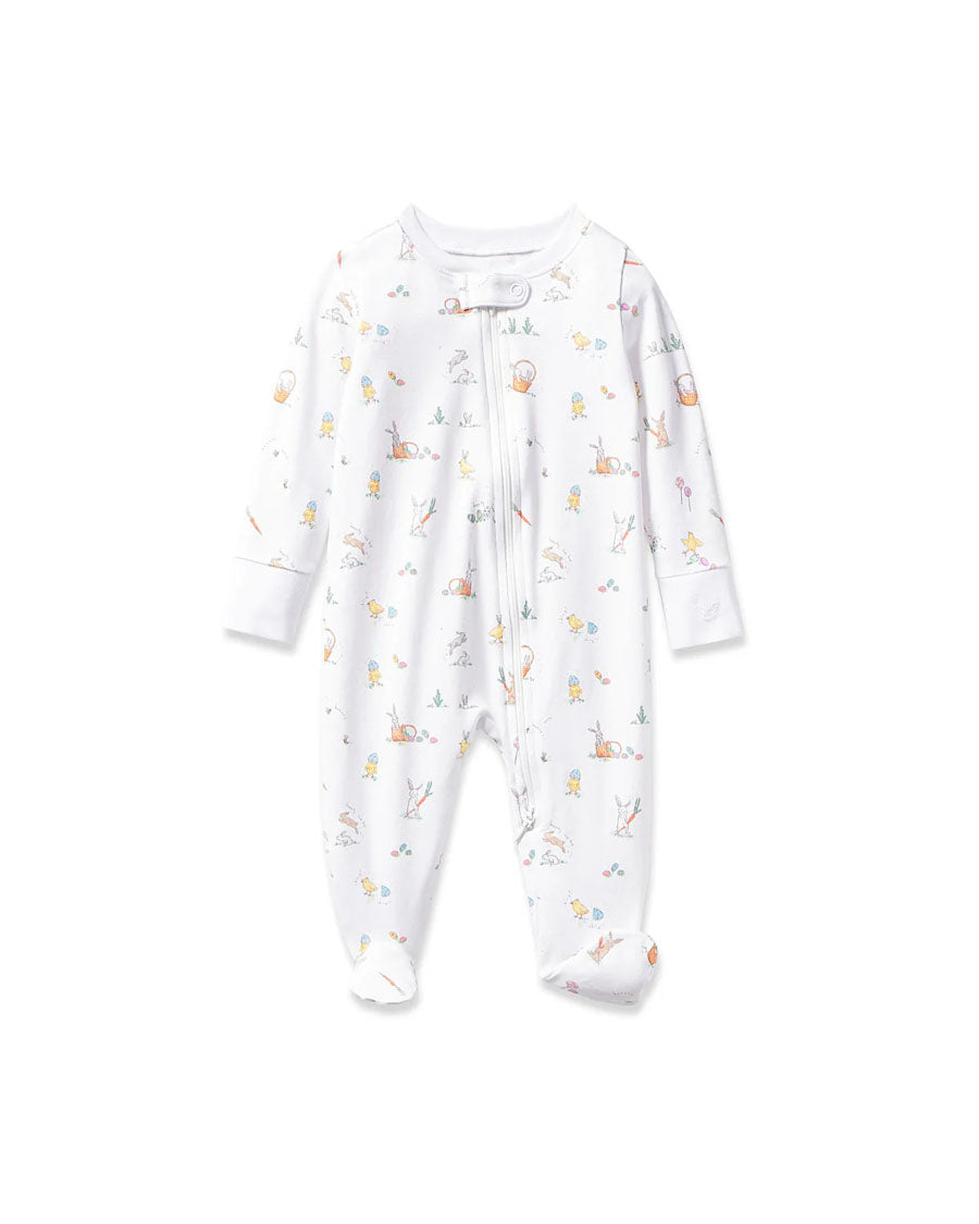 Playful bunnies and baskets full of goodies are hand-illustrated into the Easter Frolic print, brand new for the spring collection.