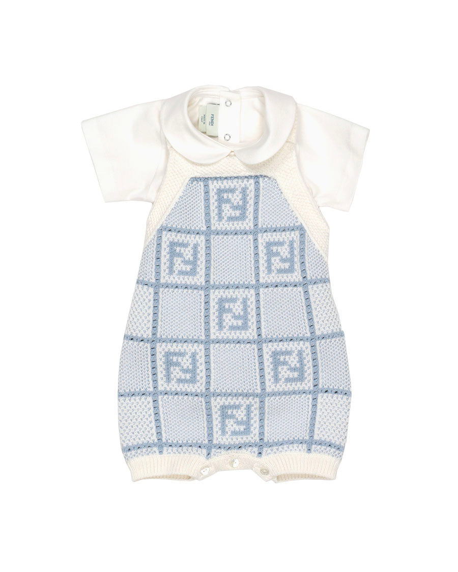 Crochet Overall w/ Bodysuit - Powder Blue/White