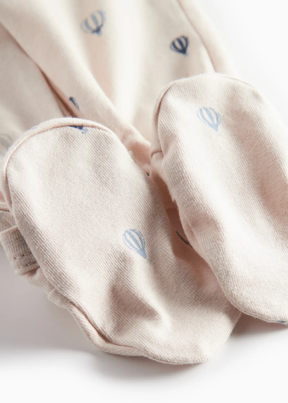 Long-sleeved jumpsuit with feet for newborns. The jumpsuit has a wrap-around closure and closes with snaps from the neck and down one leg. The jumpsuit has a nice print and is soft, stretchy and comfortable to wear.