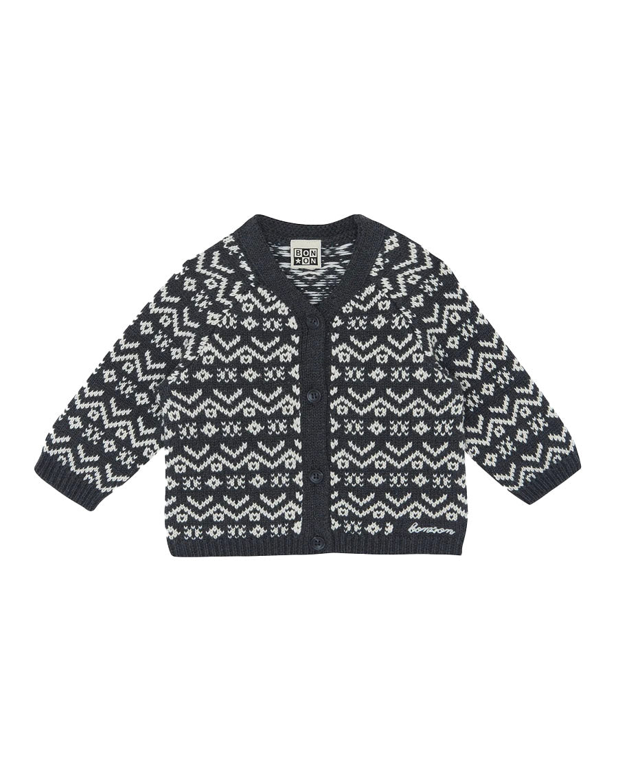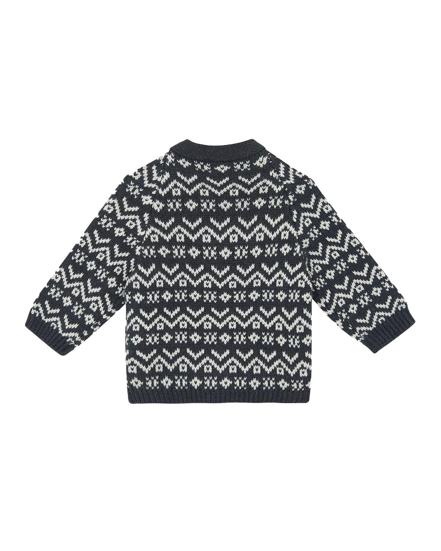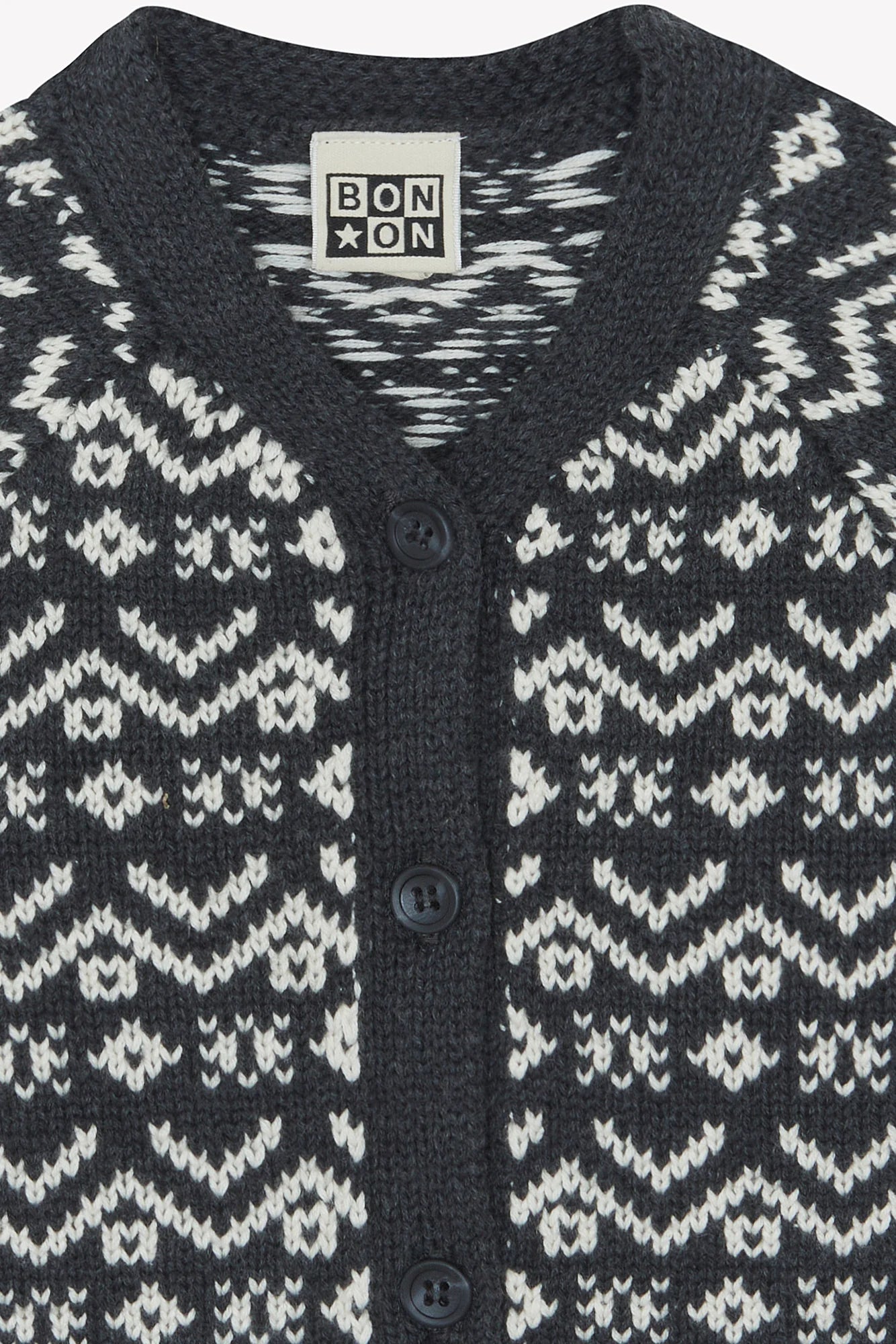 THE Cardigan Mozzen in carbon colors, inspired by the landscapes of the Faroe Islands, is a must for little budding adventurers! With its winter pattern and its Collar Zipped, it is perfect for facing the cool days in style. Made of 100% cotton, it provides comfort and softness. This Cardigan goes perfectly with a Trousers in Velvet For a cozy and trendy look!