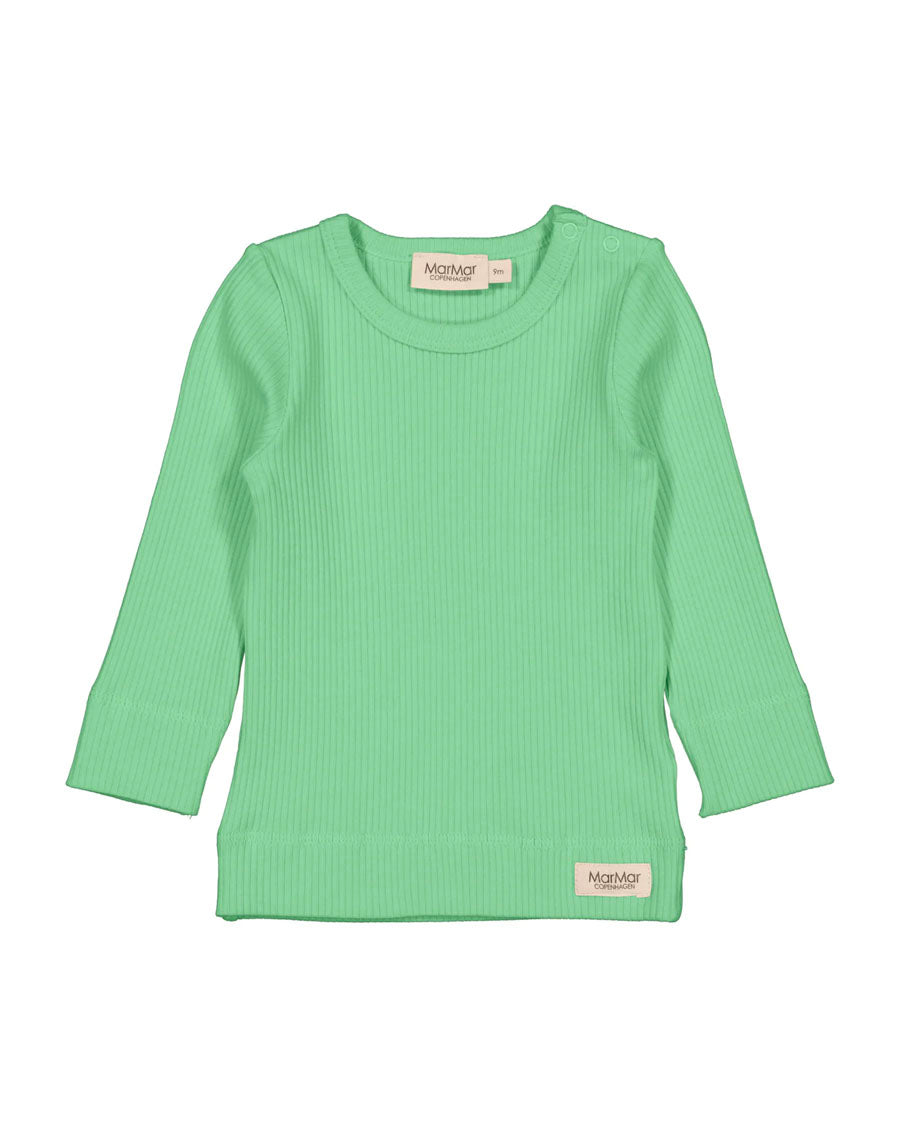 Simple long-sleeved modal t-shirt. The t-shirt is ribbed, soft, holds its shape and color and has elastane in it, which makes it stretchy and comfortable to wear.