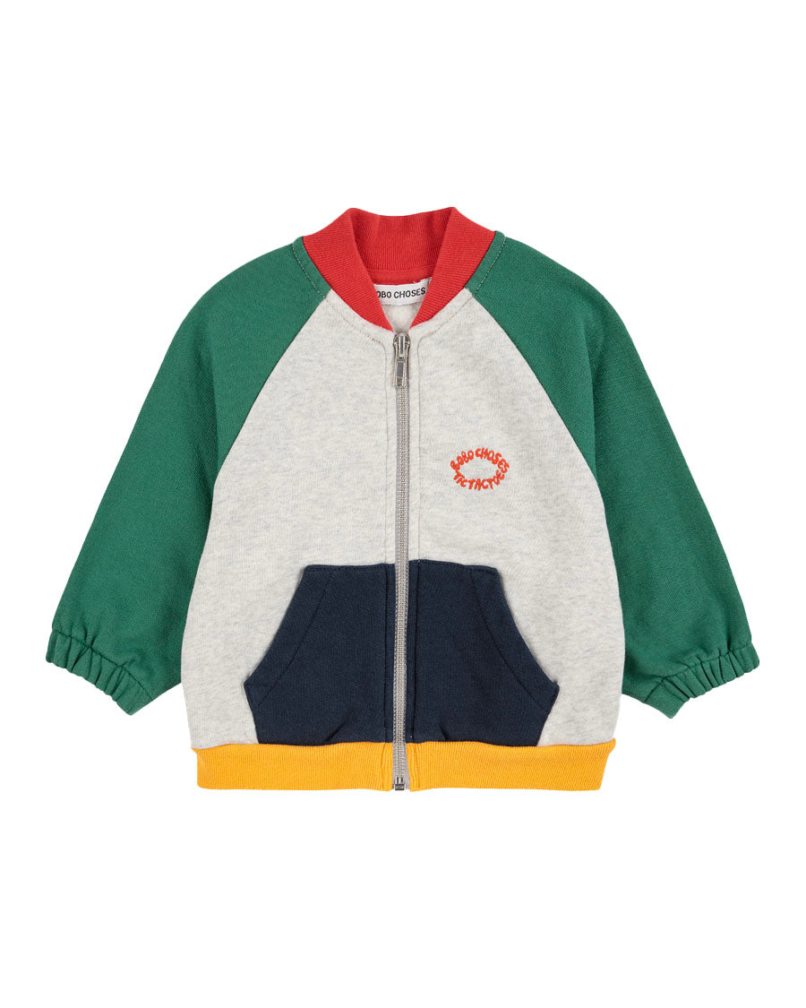 Tic Tac Toe Color Block Zipped Sweatshirt - Green/Multi