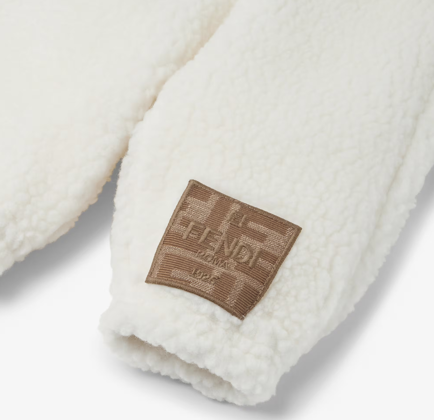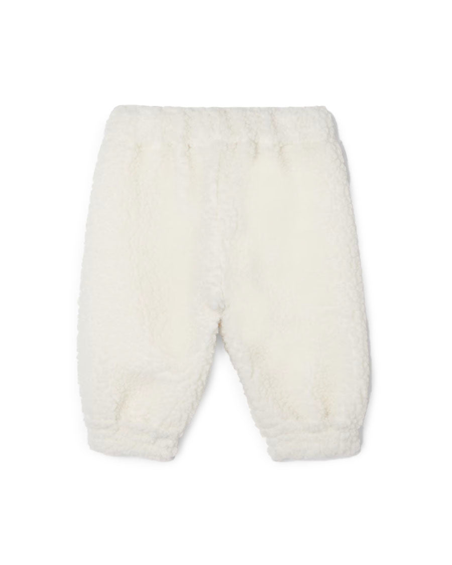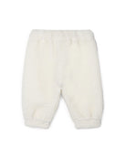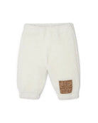 Cream baby teddy jog pants with canvas patch on the hem featuring a tone-on-tone beige FF logo.