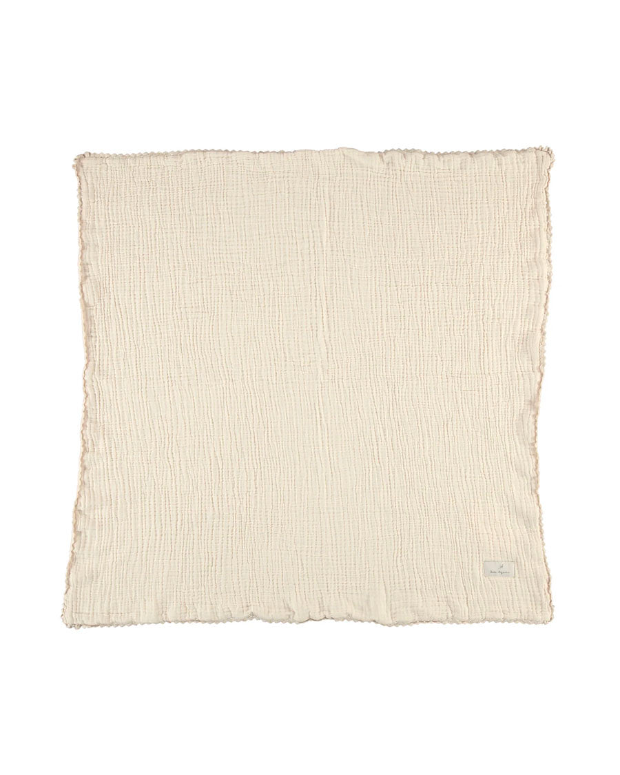 Simple and sweet Snuggle blanket in natural color is made from the softest cotton muslin with lace finishing on the edges.