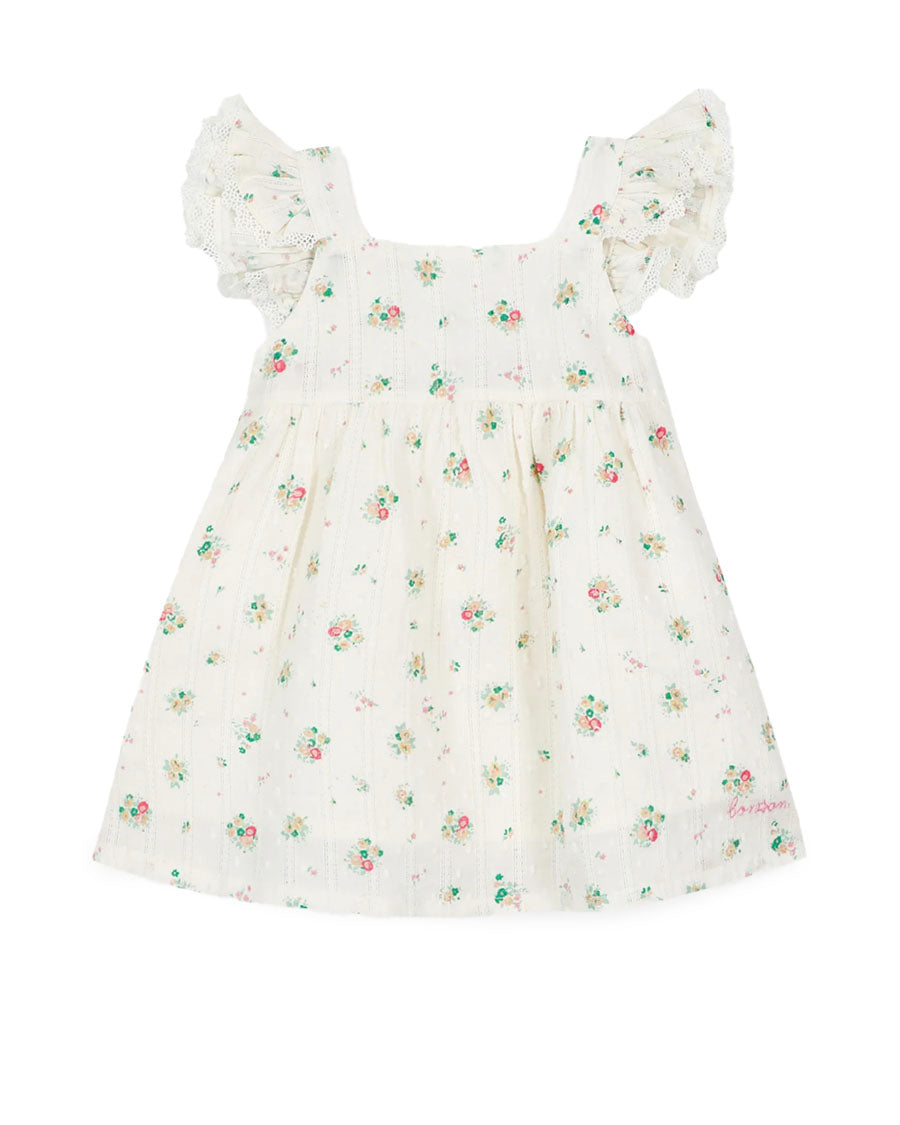Discover the Dress Nadine bouquet coco, a novelty that invites you to daydream with its enchanting floral pattern and its fabric Plumetis delicate. Made from soft cotton, it offers comfort and freedom for little explorers. Its square neckline adds a touch of sophistication and the Bonton emblem Embroidered underlines its unique charm. Perfect for sunny days, it pairs nicely with sandals or ballerinas for a fresh, summery look.