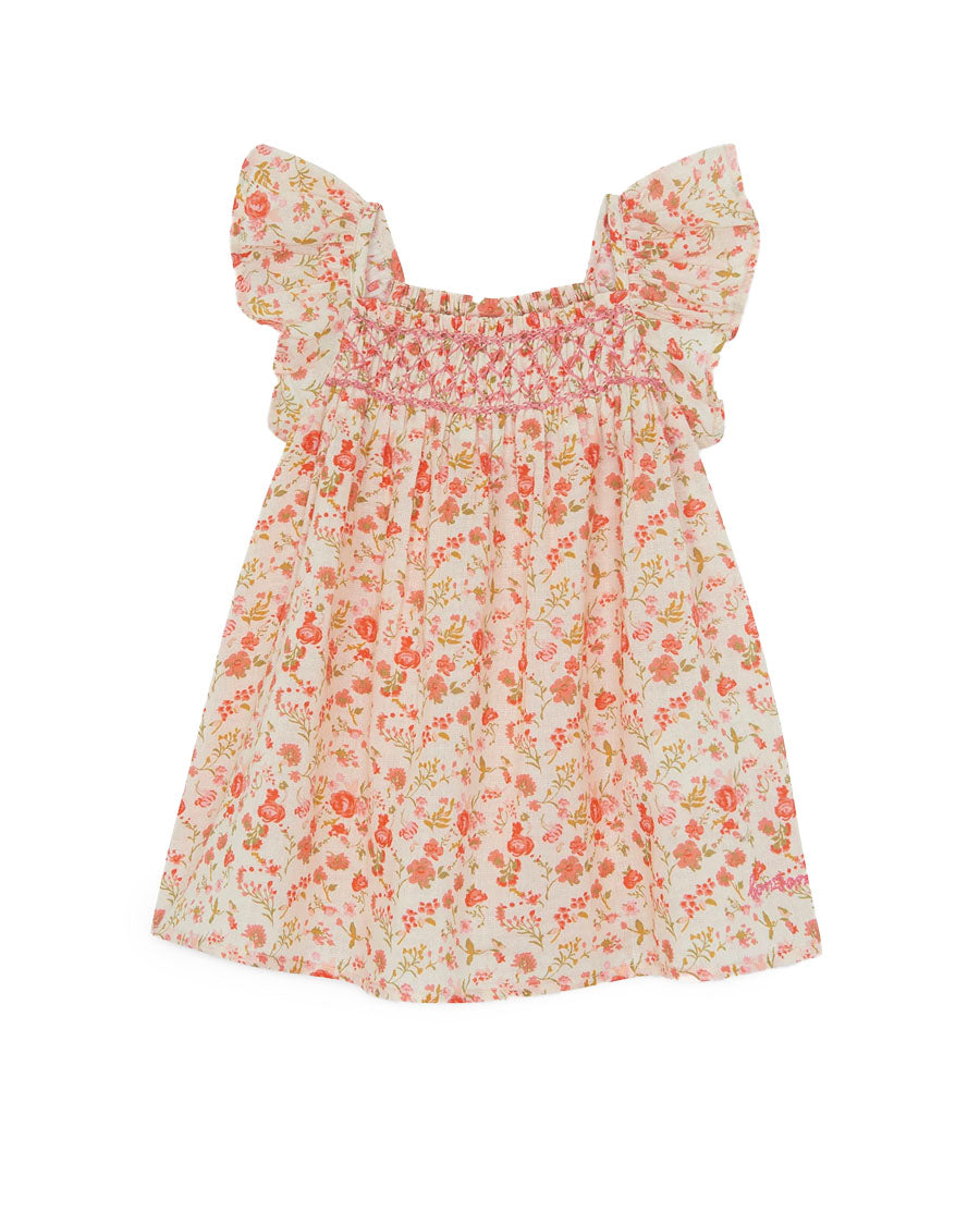 Let yourself be seduced by the Dress Louise Fleurs Indiennes, a room full of life! With its smocked bust and square neckline, it embodies joy, like a bouquet of flowers brought to life by the wind. Decorated with a Embrodery Bonton signature, this Dress in soft cotton is perfect for twirling on sunny days. Pair with sandals or ballerinas for a sparkling summer look that celebrates the “Viva La Vida” spirit!