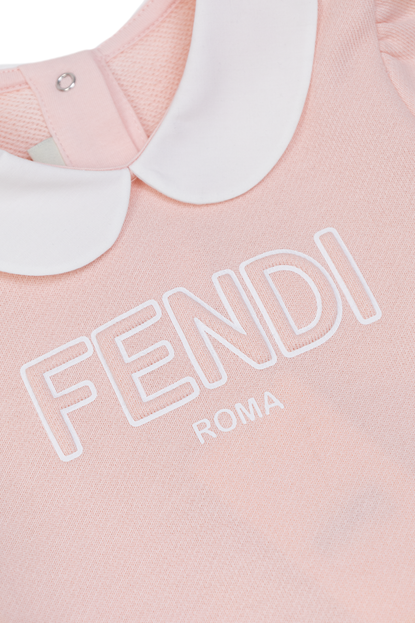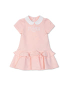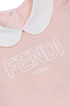 Experience refined charm with this exquisite Fendi Kids Flounced Dress. Crafted from luxuriously soft, breathable cotton, this piece ensures supreme comfort for little ones while exuding a timeless aura. The silhouette features a subtly flared, classic cut complemented by short sleeves and an elegant, contrasting white Peter Pan collar for a touch of distinguished sophistication.