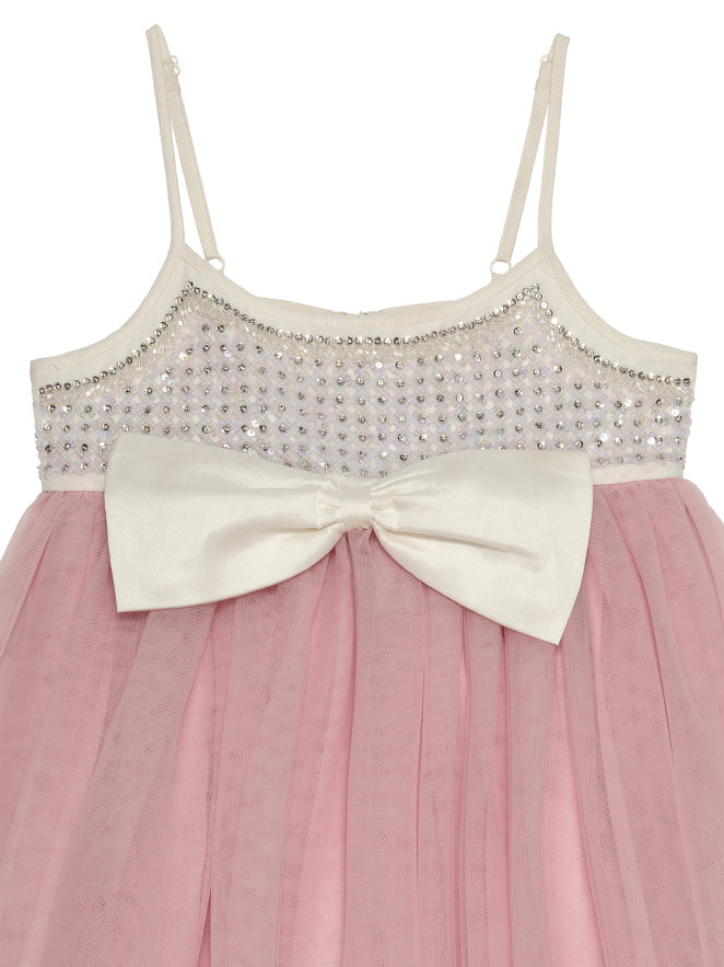 The Bébé Jolie Tulle Dress in Floss Mix is a charming addition to Primrose Hill Leisure Club! This enchanting dress features a dazzling diamanté bodice that adds a touch of glamour, complemented by delicate straps and a sweet bow at the front for a picture-perfect finish. The dreamy milk-hued top pairs beautifully with layers of soft pink tulle, creating an ethereal silhouette made for twirl-worthy moments.