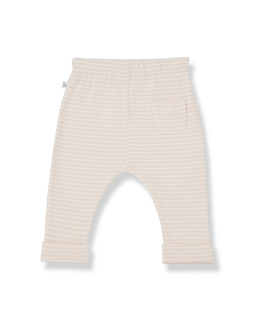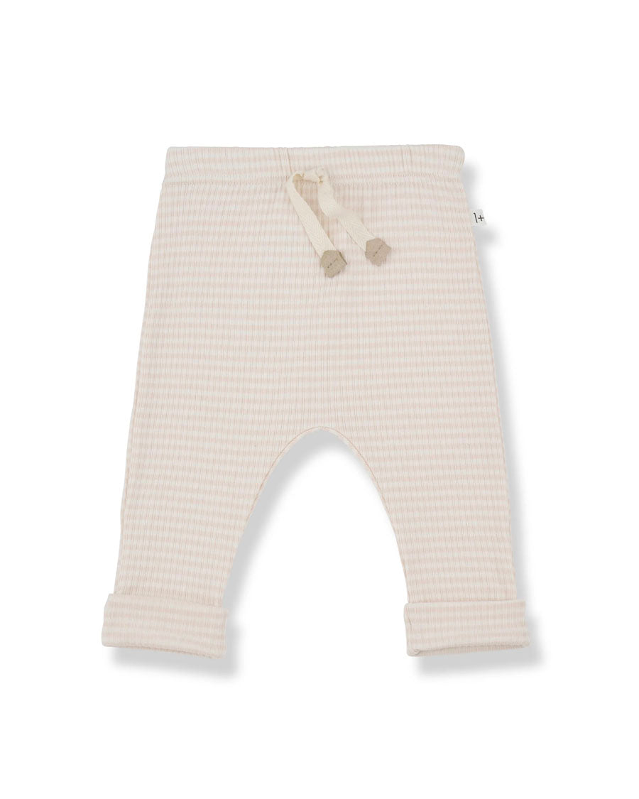 1+ in the family Hugo baby pants in nude and cream stripes. Made with lightweight ribbed cotton, these pants are perfect for your baby's comfort. The elasticated waist and rolled up ankles provide a secure fit while the decorative drawstring adds a touch of style.