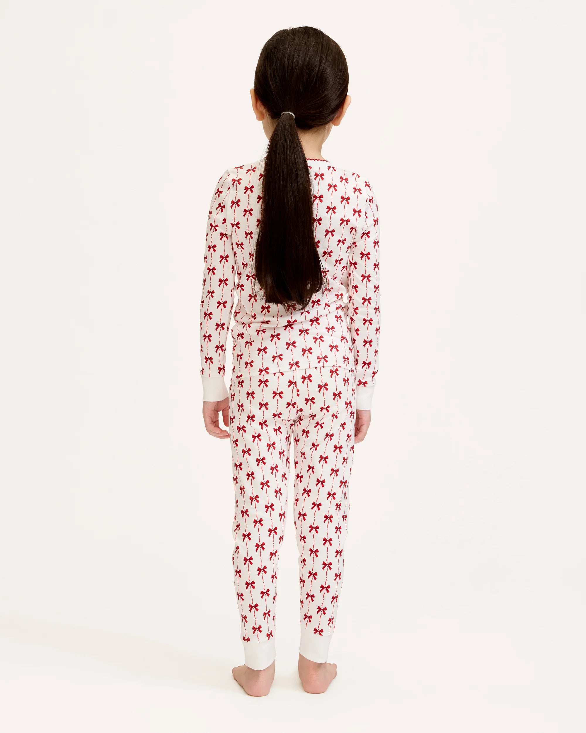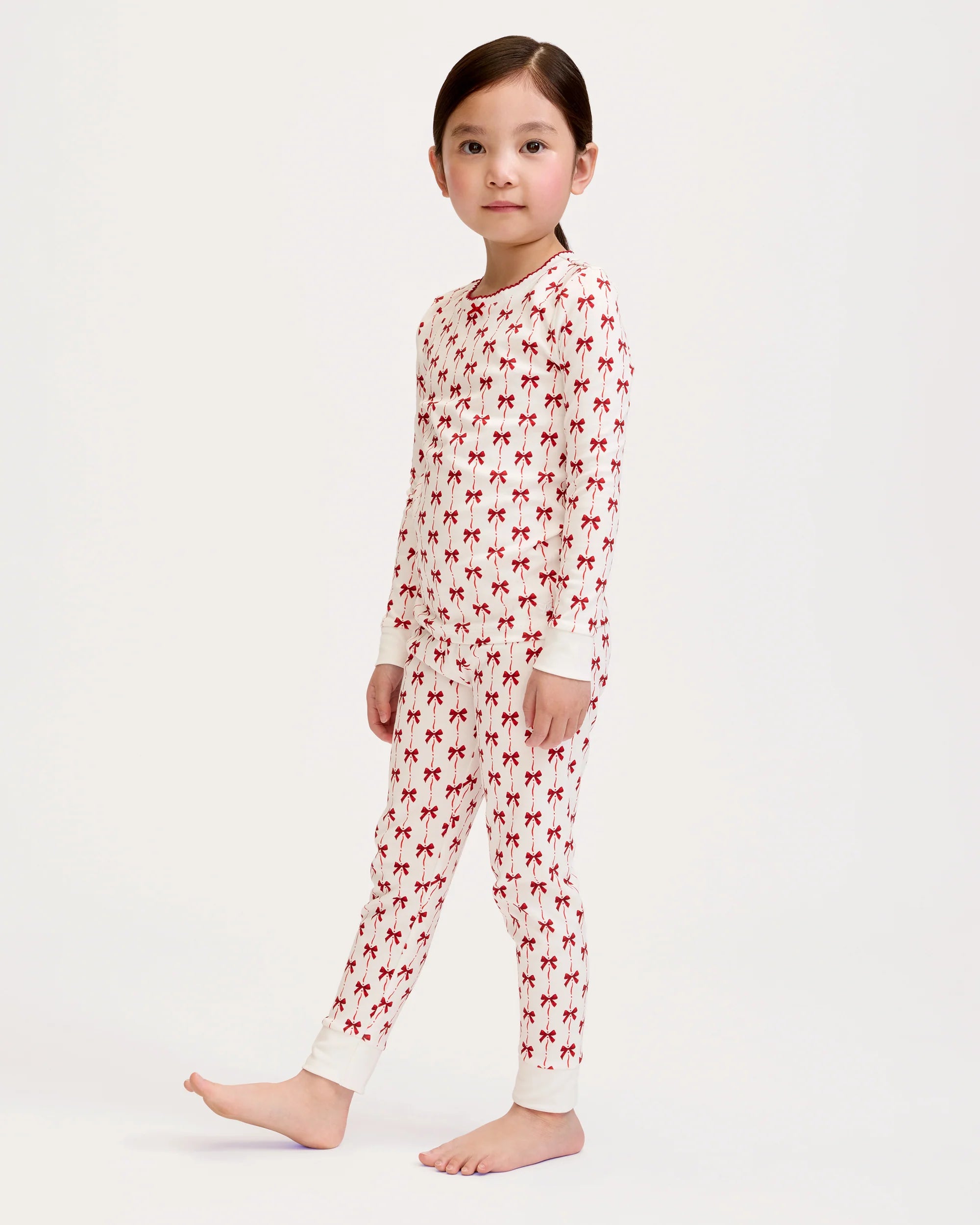 Your favorite buttery soft pajamas are ready for all your festive moments. Cheery red bows neatly line this print—an elegant holiday keepsake. This Long Sleeve Top and Pant Set offers a secure, snug fit, allowing freedom of movement for active little ones while providing a perfect silhouette for cooler months. Designed to coordinate with the whole family, the set offers superior comfort, durability, and style points.