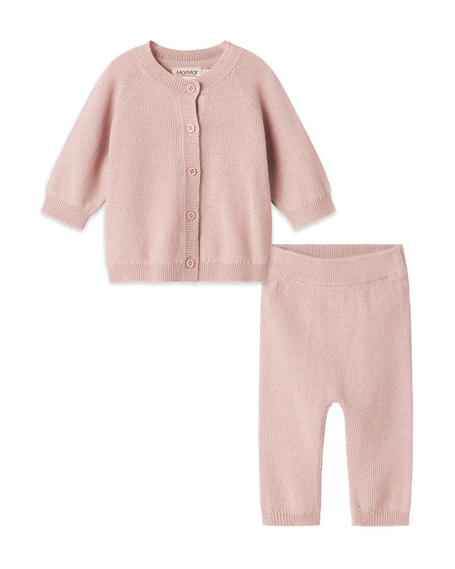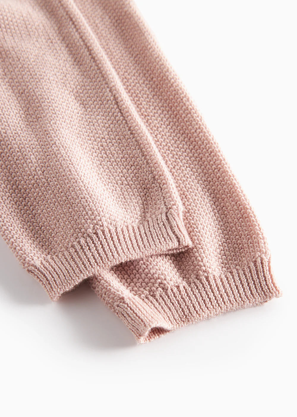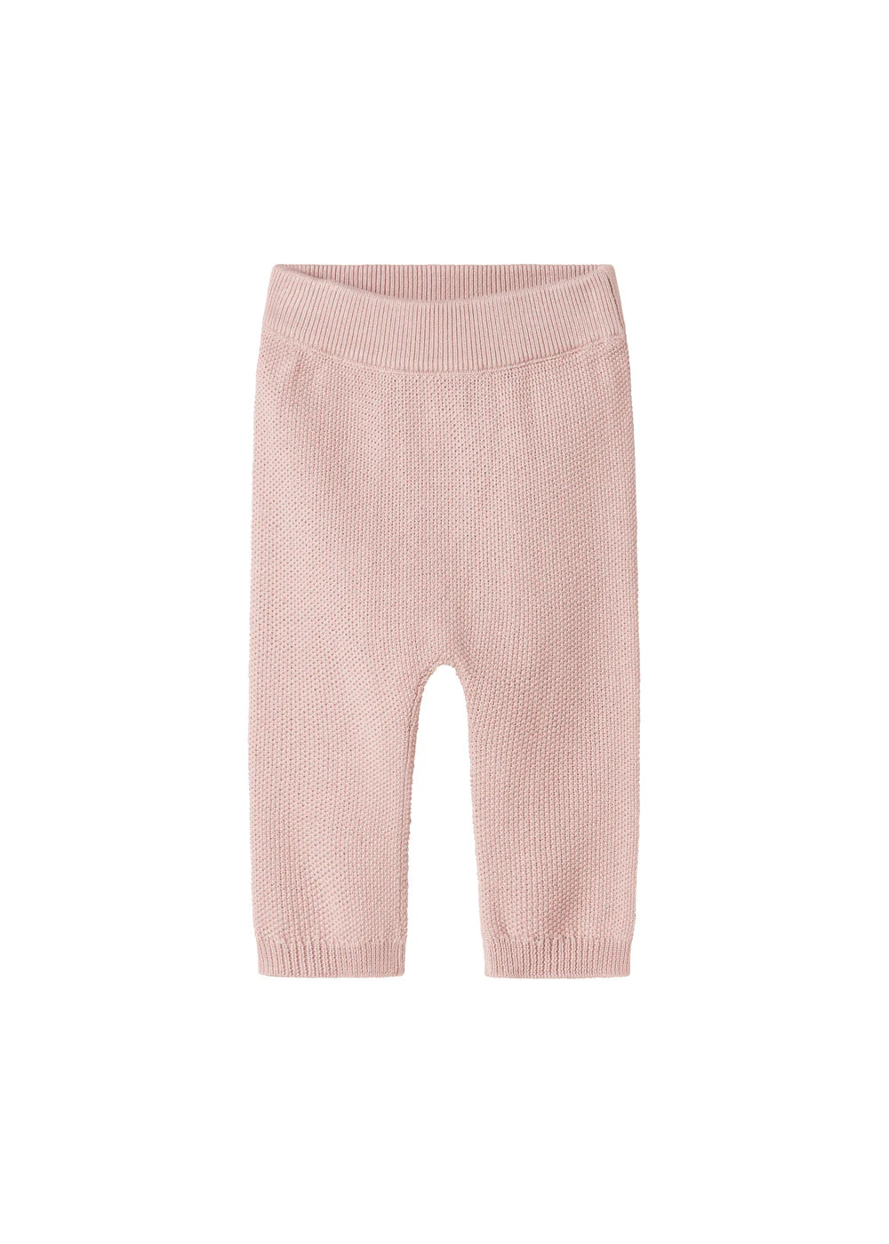 Knitted pants for baby with elastic waist. The pants are knitted in a dense, structured pearl knit. The pants are both warm and comfortable to wear.
