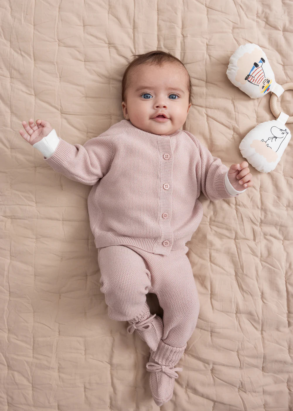 Knit cardigan for the little ones with button closure at the front. The cardigan is knitted in a dense, structured pearl knit and has a round neck closure and rib details at the neck, sleeves and bottom for a comfortable fit.