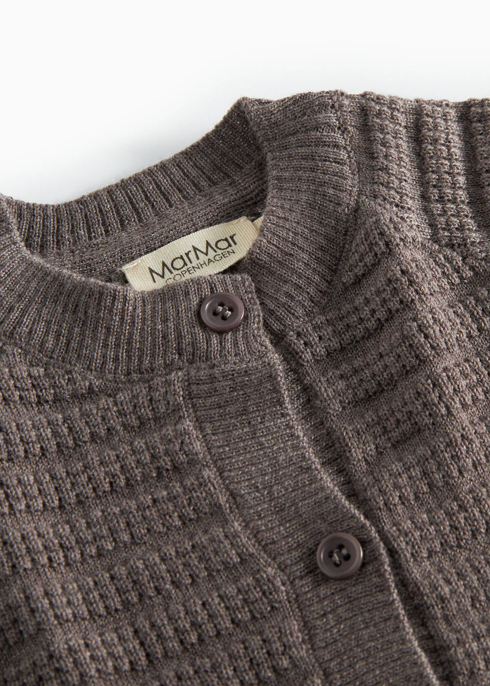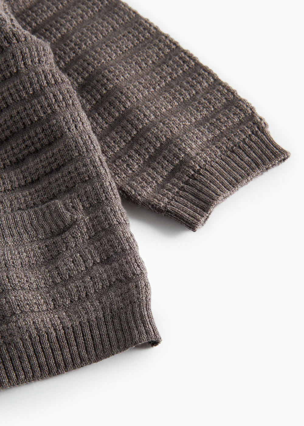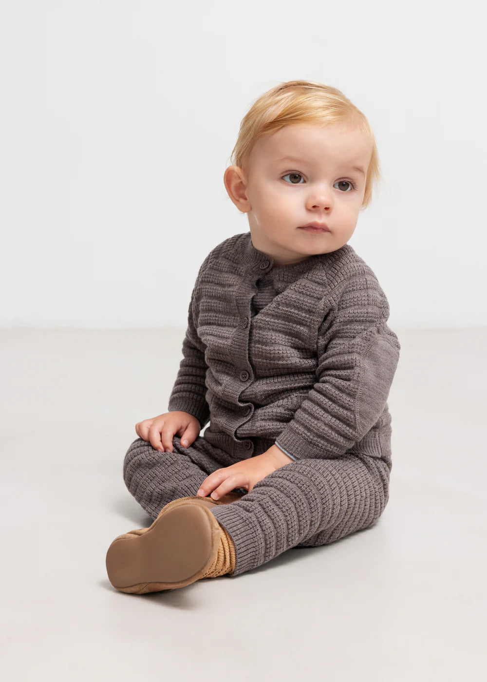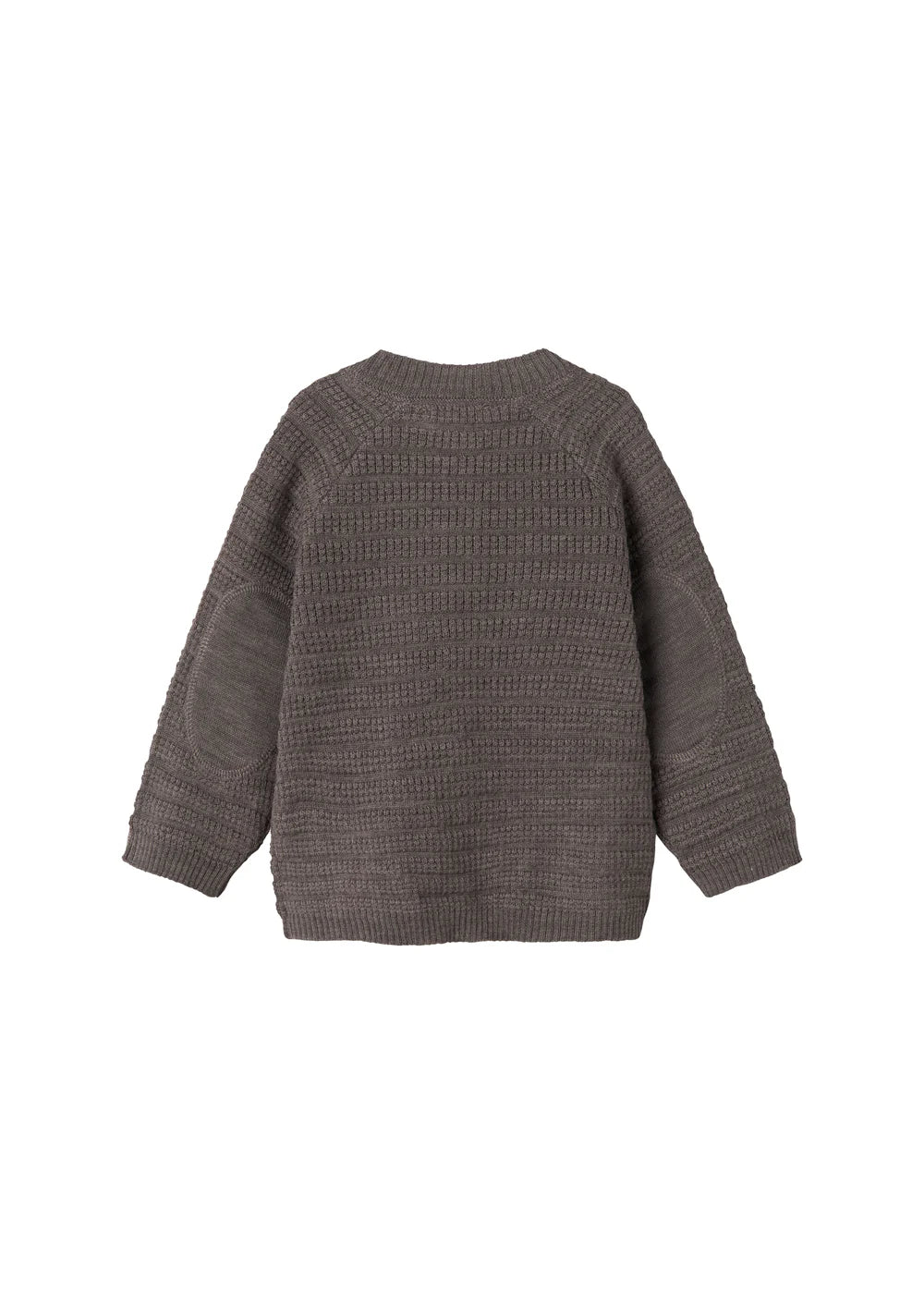 Knit cardigan for the little ones in merino wool with button closure, two small pockets at the front and nice patch detail on the sleeves. The cardigan is warm, soft and comfortable to wear.