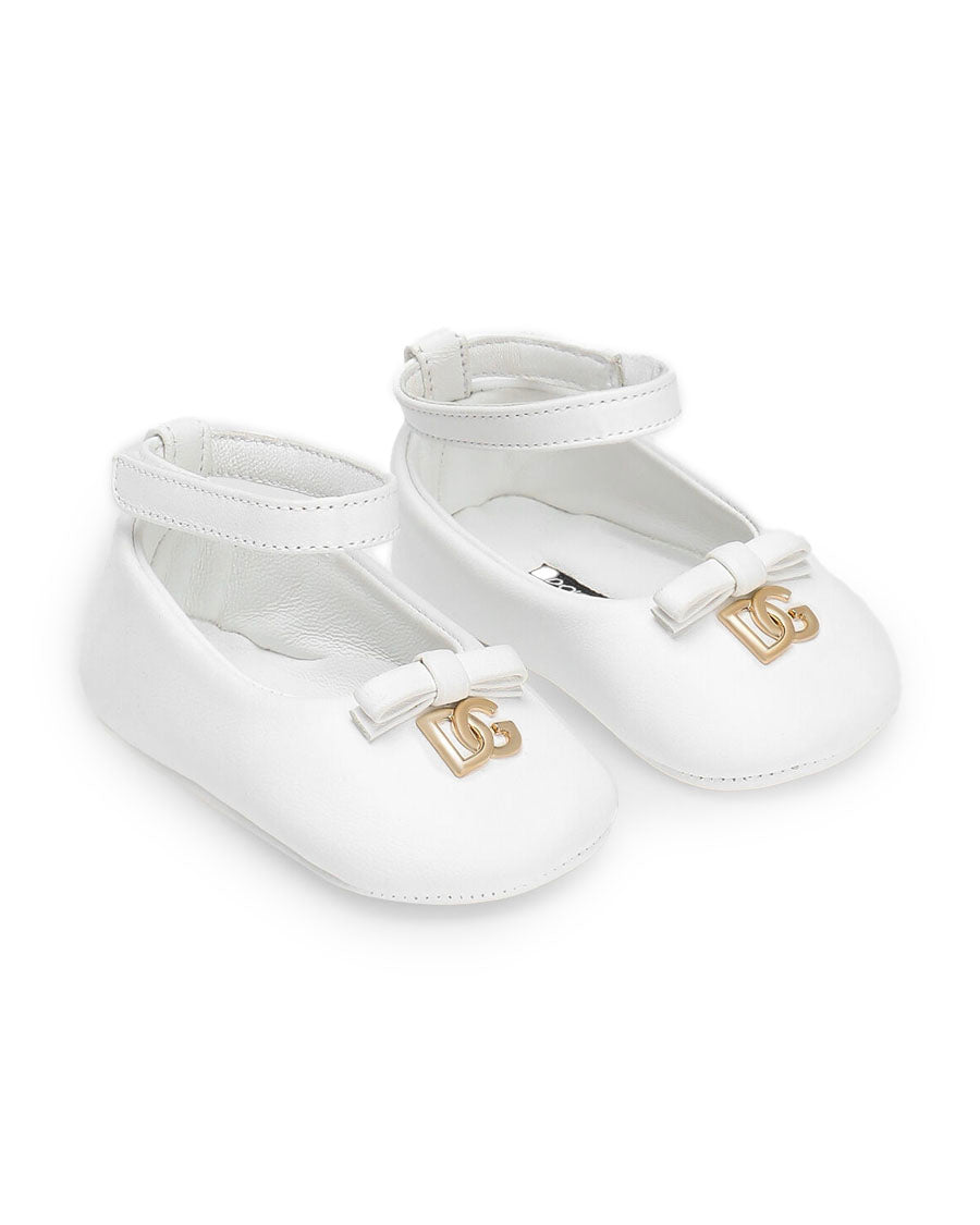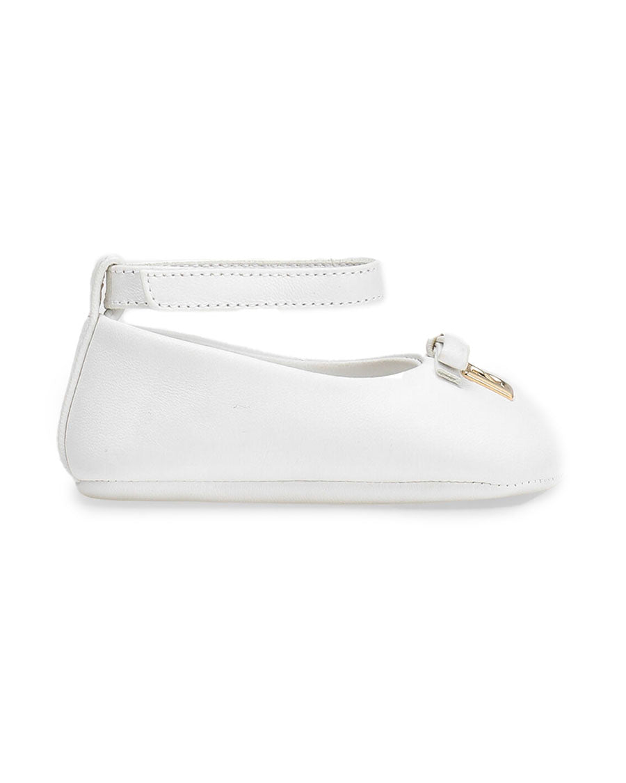 This white nappa leather ballet flats represents the perfect elegance and delicacy for newborns, combining comfort and style in one accessory.