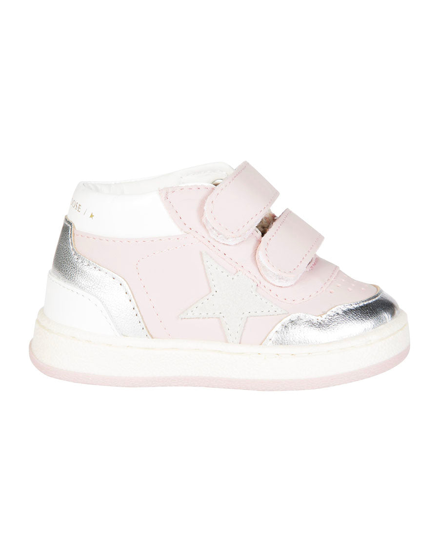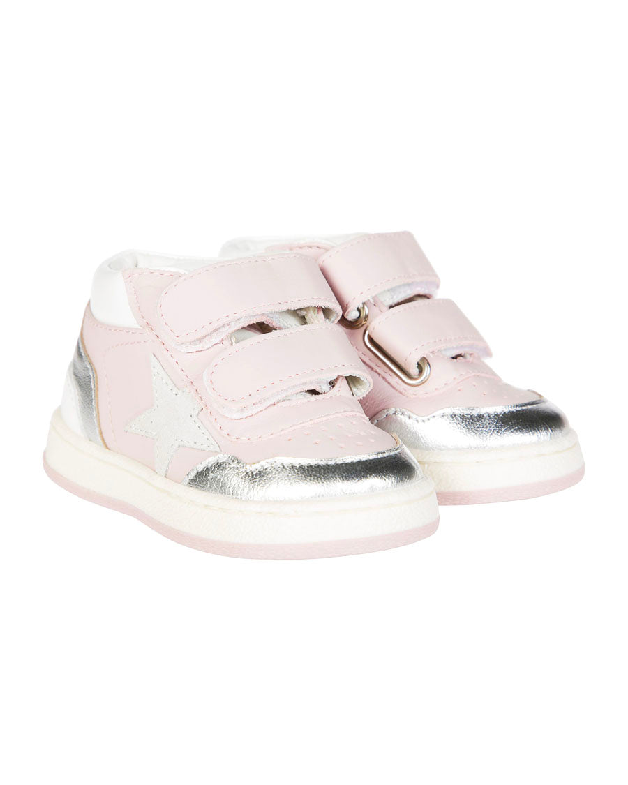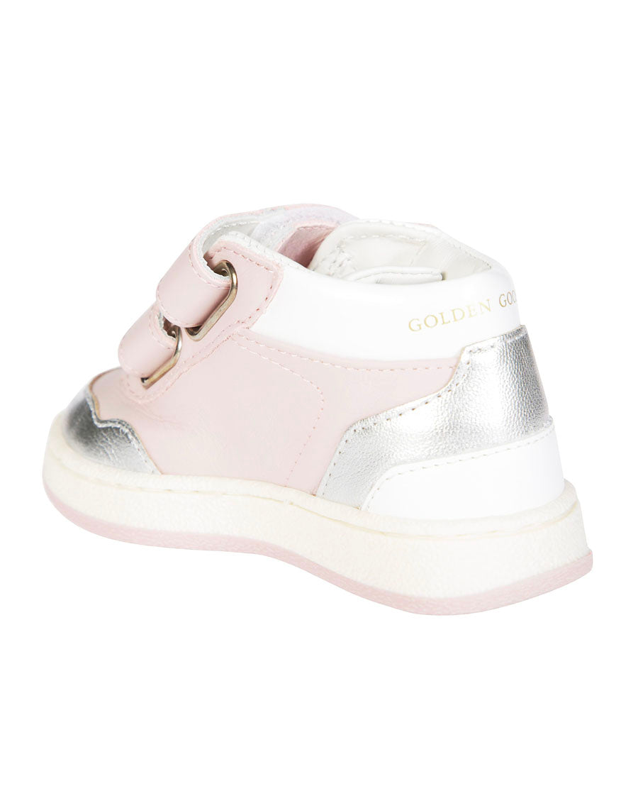 June Basket Leather Sneakers w/ Laminated Shiny Toe & Heel - Pink/Silver