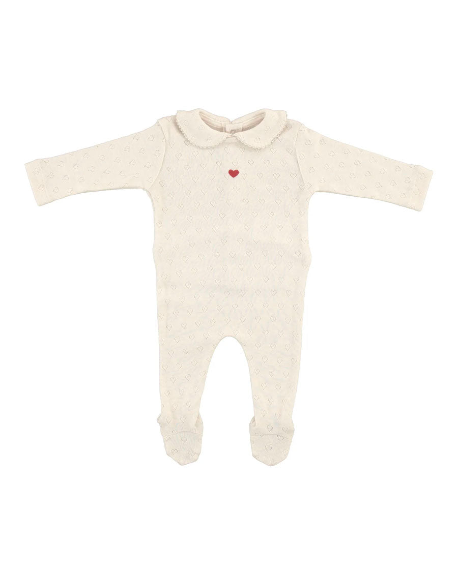 Beloved heart pointelle essential line in organic cotton. Little ones will wear these super light and soft models with ease and style, whether they are snoozing or just relaxing around the house.