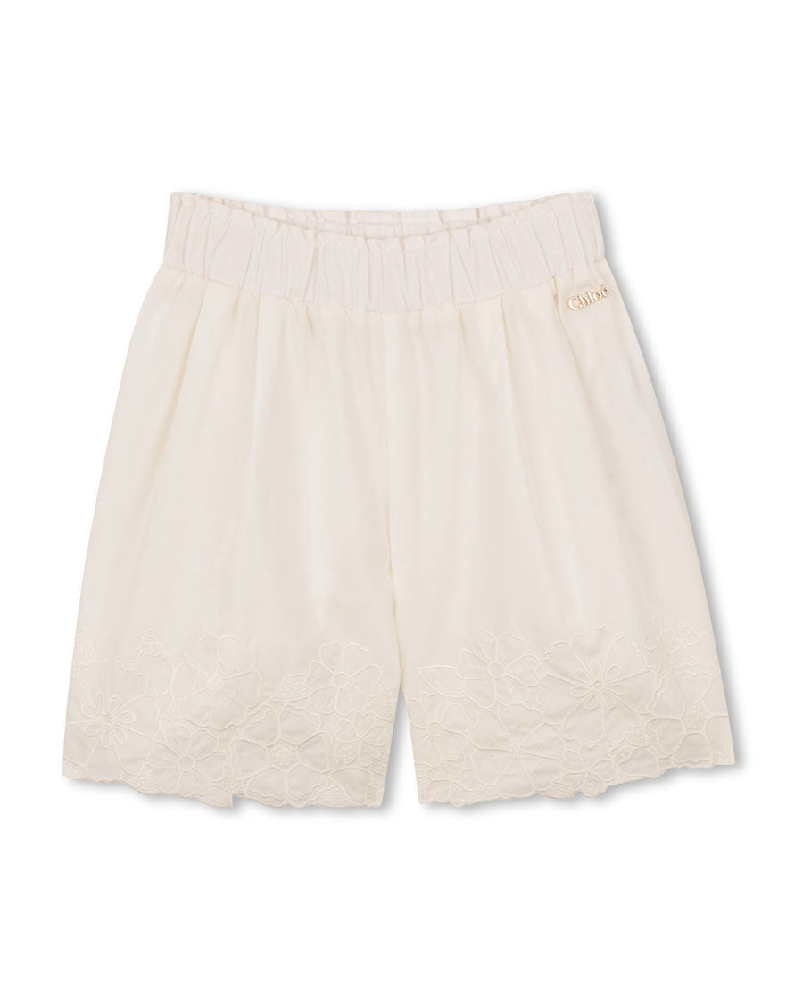 Large Shorts w/ Floral Embroideries - Off White