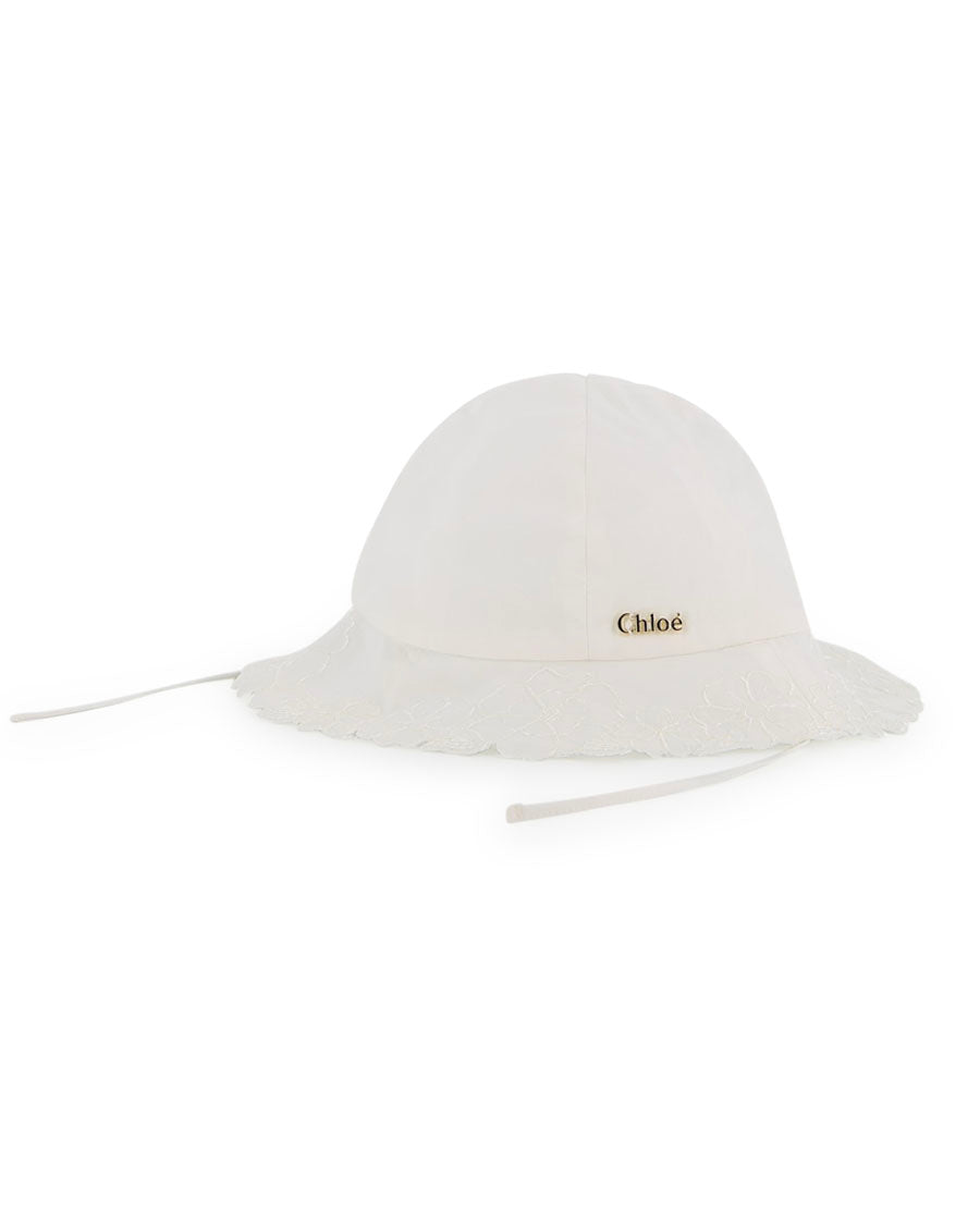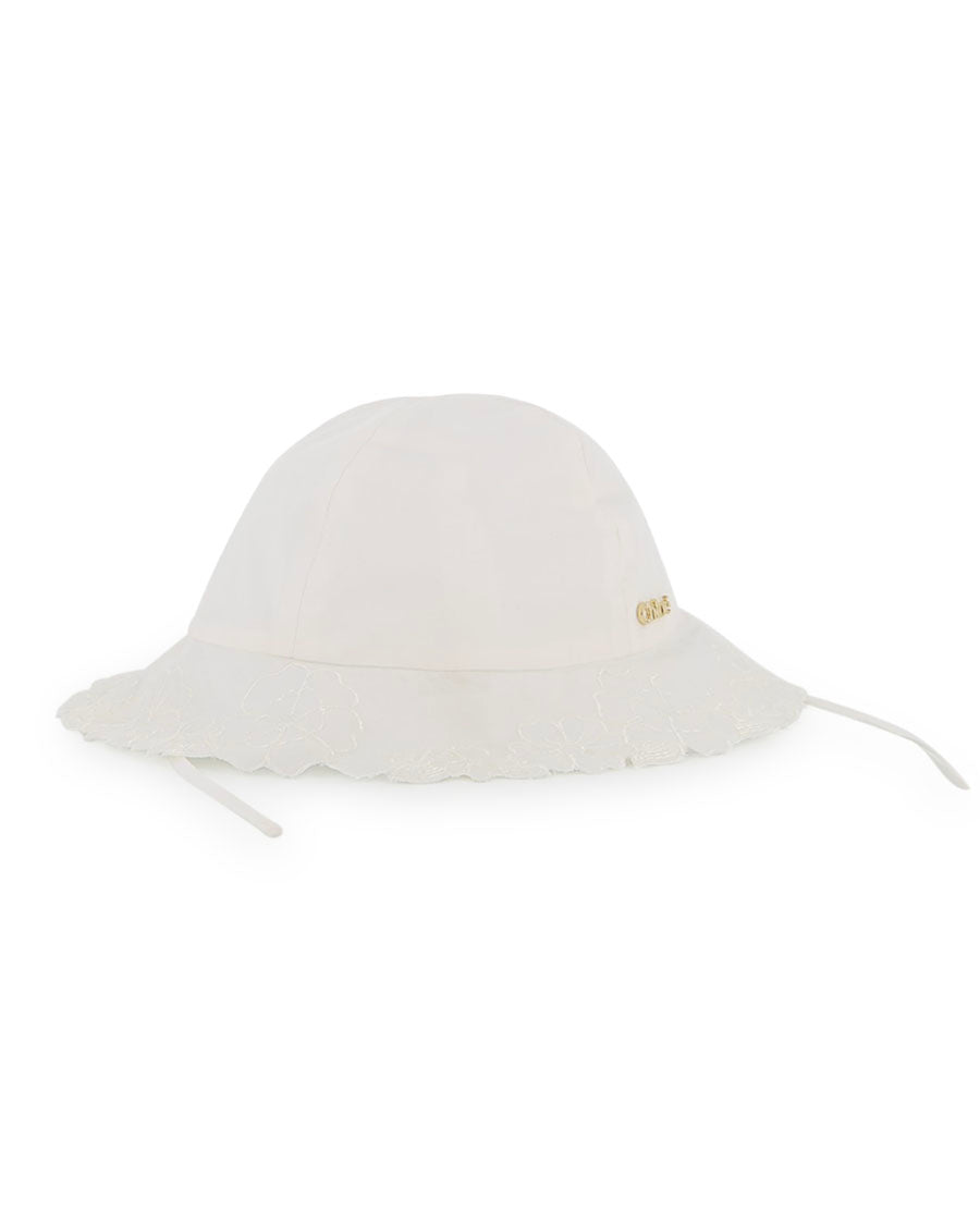 Awaken your child's style with this CHLOÉ hat, made of poplin containing organically grown cotton. The delicate floral embroidery adds a touch of poetry, while the percale lining containing organically grown cotton ensures optimal comfort. The gold metal CHLOÉ plate enhances the whole, bringing a touch of elegance to every outfit. Give your little one a piece that combines fashion and comfort, perfect for any occasion!
