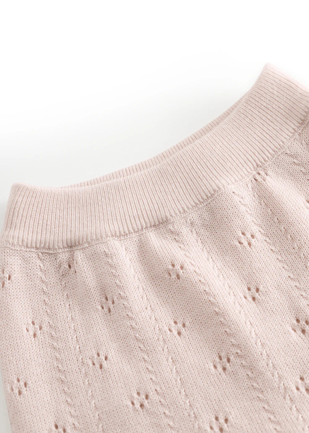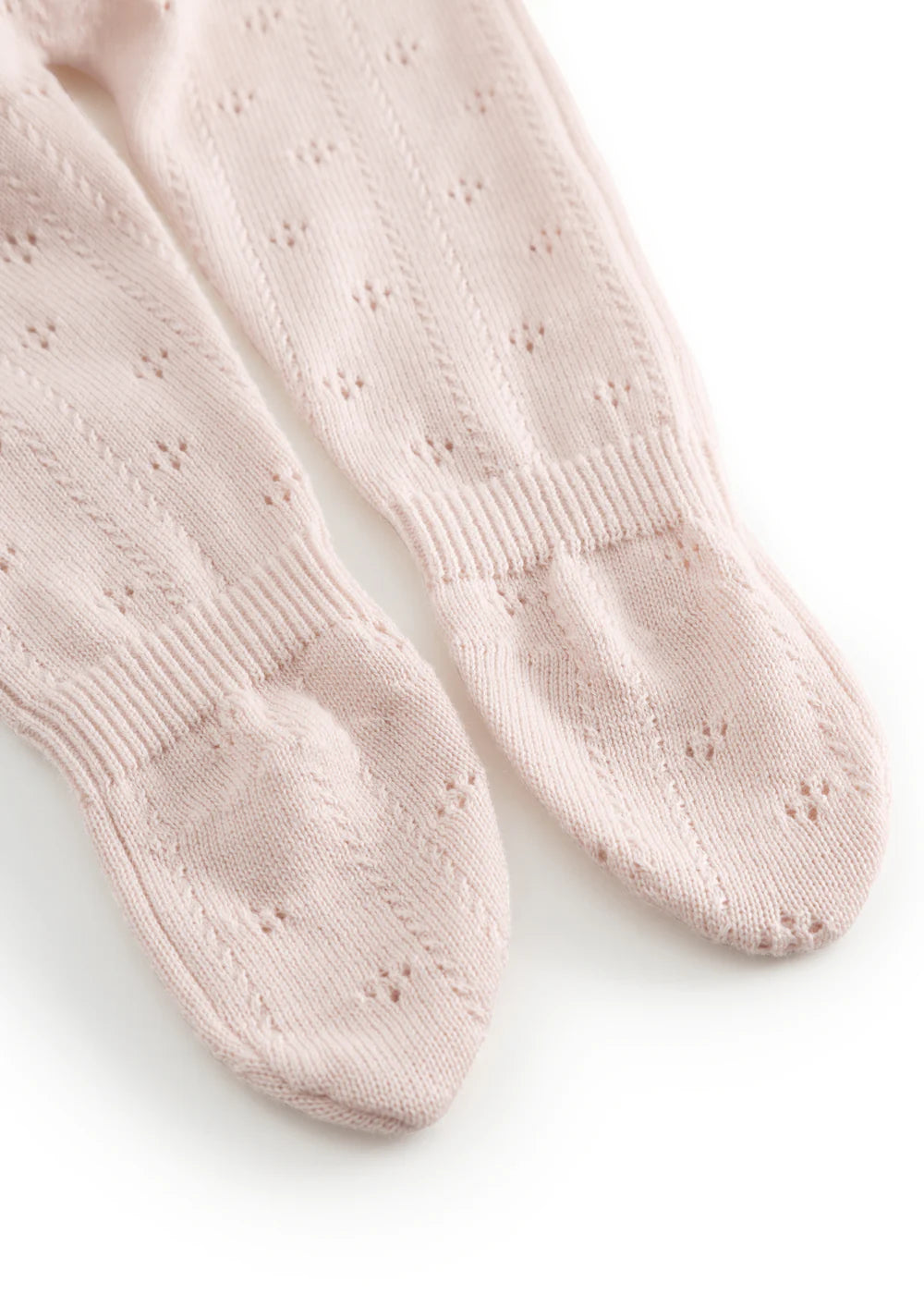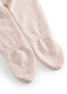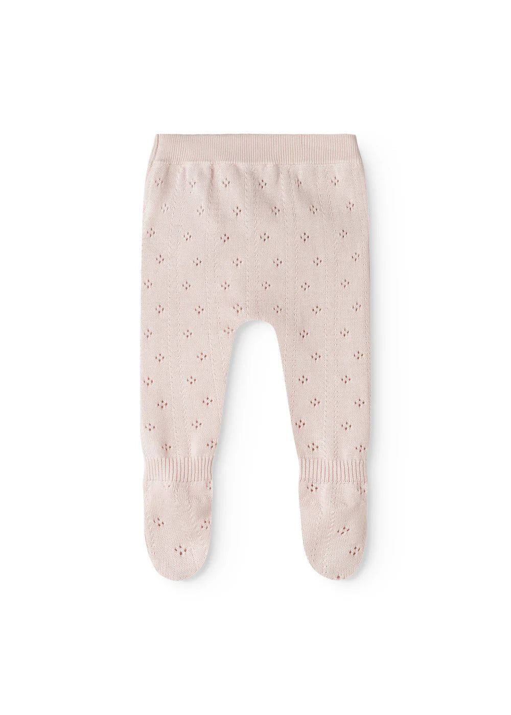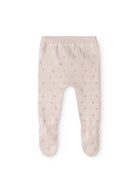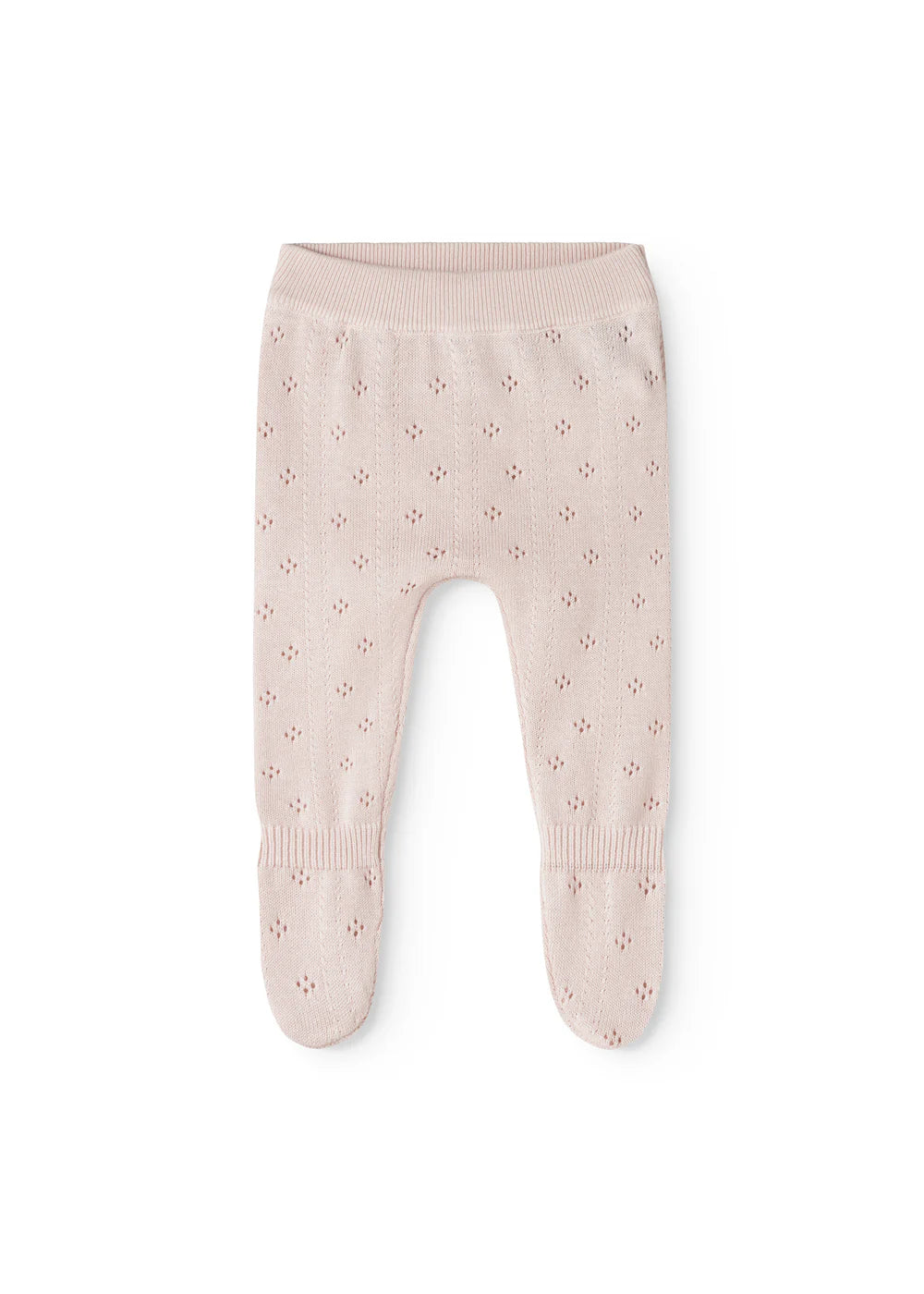 Knitted trousers for the little ones with feet and a fine lace pattern. The trousers have a wide elasticated waist and ribbed edges at the ankles for a soft and comfortable fit.