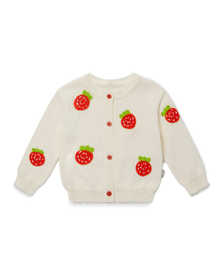 Strawberry Crochet Cardigan - Cream