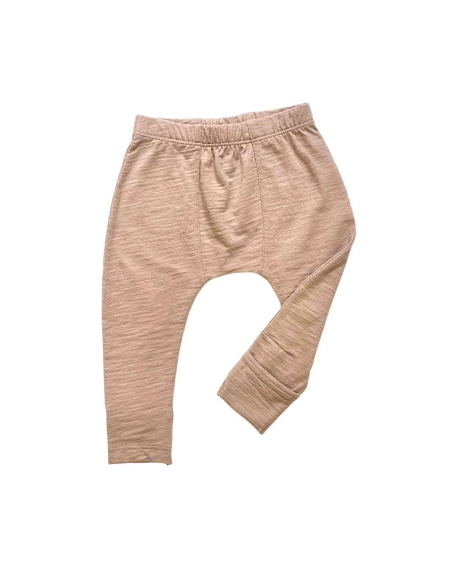 TANE's bestseller pants style, now in the textured flamé knit. The cleverly built in feet cover is perfect to use as an additional coverage for little feet. Intentionally designed panel at center provides the extra ease. Soft elastic waistband is easy and comfortable. On its own or pair it with the matching onesie for the perfect baby gift!