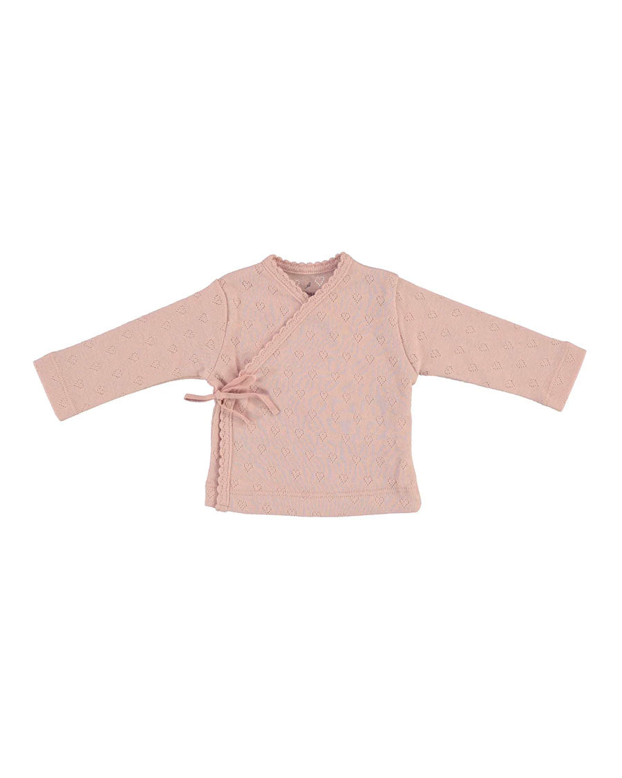 Bebe wrap tee is the ultimate item for all babies, and especially for newborns. Extremely soft tee crafted from organic cotton heart pointelle features snaps for an easy dressing, and long sleeves to give that extra comfort and coziness to the little ones. Match it with Bebe Heart footed leggings and Bebe Heart hat/Bebe bonnet for the perfect set.