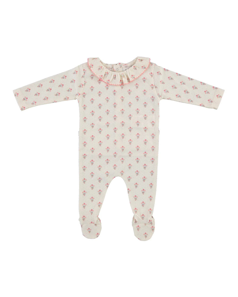 Adorable cotton jersey essential line in gentle bouquet print. Mora line has a diverse range of products that can be mixed and matched. Little ones will wear these super light and soft models with ease and style, whether they are snoozing or just relaxing around the house.