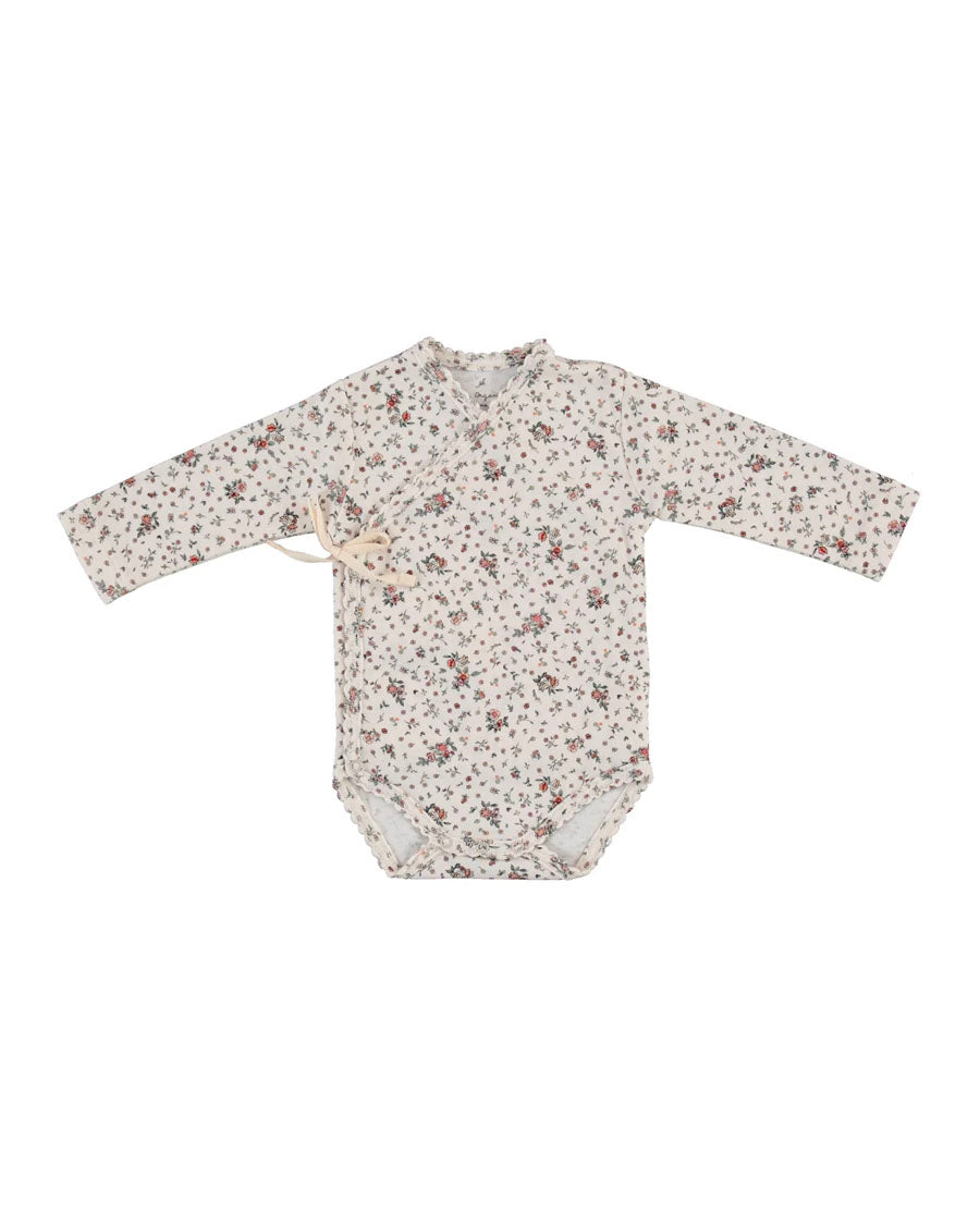 Beloved wrap onesie is the ultimate item for all babies, and especially for newborns. Extremely soft, crafted from organic cotton in a signature retro floral print onesie has snaps for an easy change and long sleeves to give that extra comfort and cosiness to the little ones. Match it with Blanca footed leggings and Blanca bonnet for a perfect set.