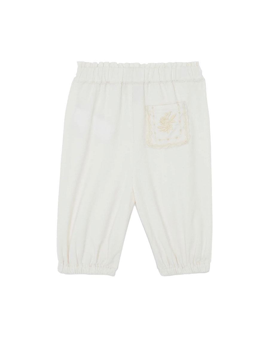 THE Trousers MisCotte en Écru Bonton is a little treasure from the "Winter Tales" collection. With its elastic waist and puffy style, it offers perfect ease for winter adventures. There PocketMain embroidered and its croquet add a touch of charm. In 100% cotton, it envelops the little ones. Combine it with a Sweater Cozy for a cocooning and stylish look, ideal for exploring magic worlds!
