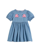 Chambray Dress w/ Ladybug Embroidery - Blue