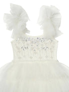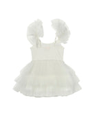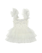 Bursting with sweetness and soft elegance, the Bébé Whispers of the Deep Dress in Milk is made for magical moments and treasured celebrations. The bodice shimmers with delicate silver embellishments, adding just the right touch of sparkle and enchantment. Frilly tulle straps lend a playful, airy charm, while the layered skirt flows with gentle volume - perfect for twirling, skipping, and everything in between. Crafted in dreamy soft tulle, this dress is a storybook-worthy piece she’ll remember long after the last dance.