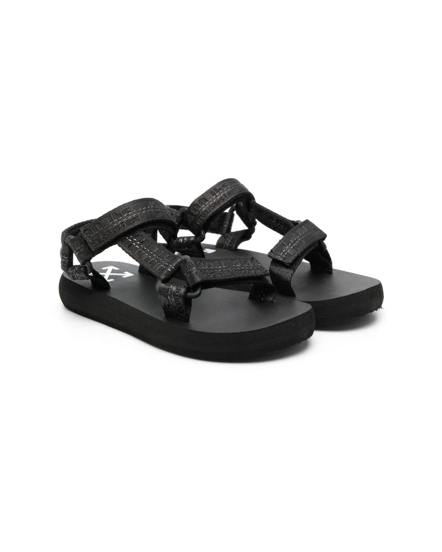 Touch-strap open-toe sandals from Off-White Kids featuring black, open toe, double-strap design, round toe, front touch-strap fastening, ankle touch-strap fastening, flat rubber sole and branded insole.