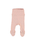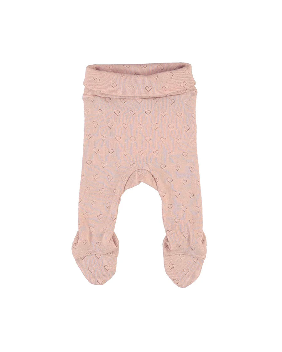 Comfiest Bebe footed leggings in organic cotton heart pointelle. Features a high waistband, covered toes, and a comfortable snug fit. These footed leggings are the ultimate item for all babies and especially for newborns.