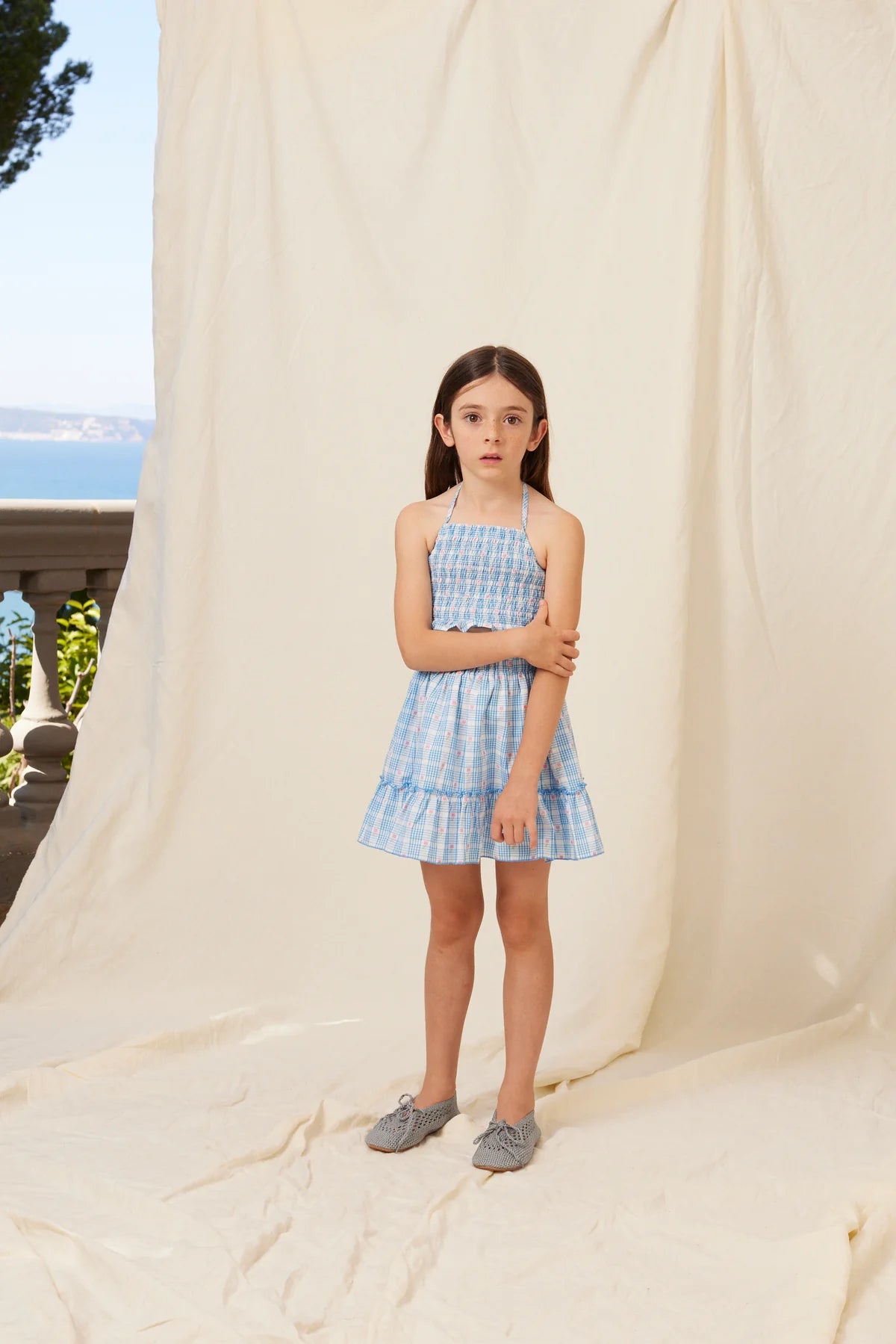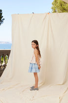 Lovely cotton Ida skirt in signature floral check print features a comfortable elasticated waist and ruffled hemline. Perfect match with the Ida top and Ida headscarf for a total summer look.
