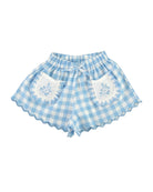 The cutest of them all - we present Viola shorts crafted from the softest 100% cotton in an elegant sailor check, featuring flower embroidery on front pockets, loose fit, and an elasticated waistline with an adorable little bow for extra comfort. Perfect with the Viola top.