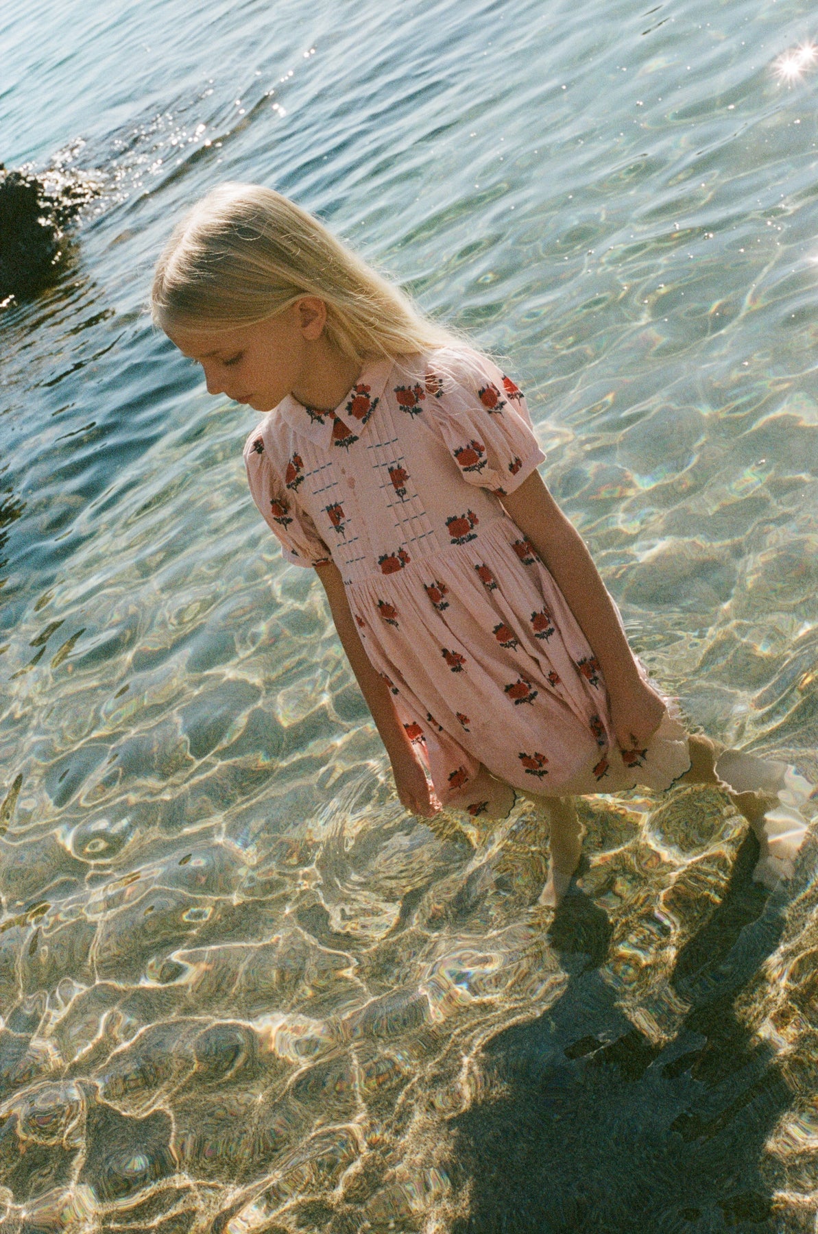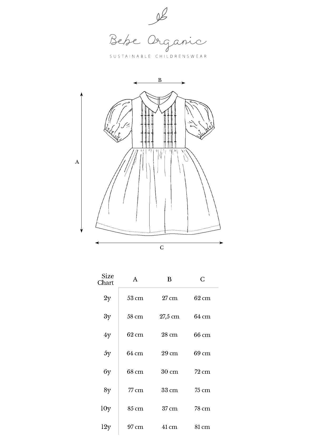 Dreamy dress for this spring/summer season! The April dress features adorable puff sleeves, a cute yet elegant collar, pin tuck detailing, and a comfortable and elegant skirt — a lovely addition to your little one's spring/summer wardrobe.