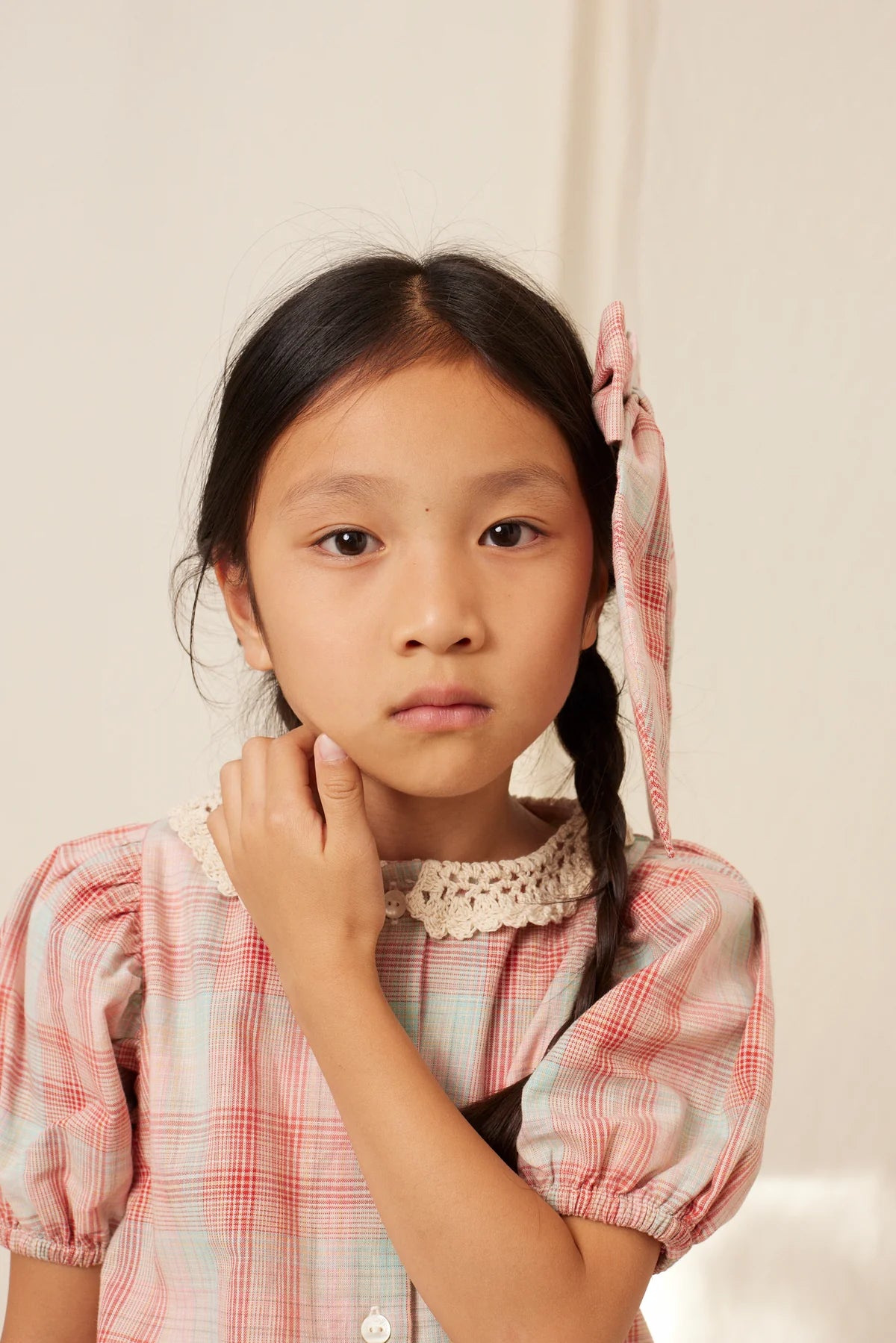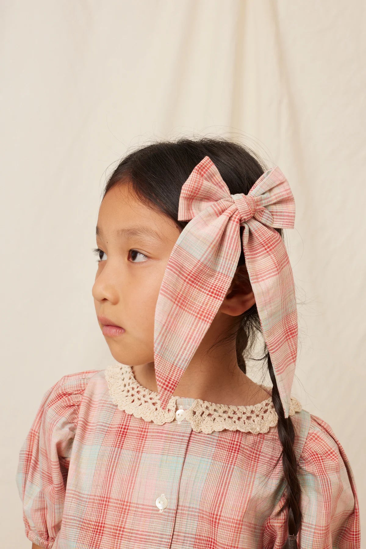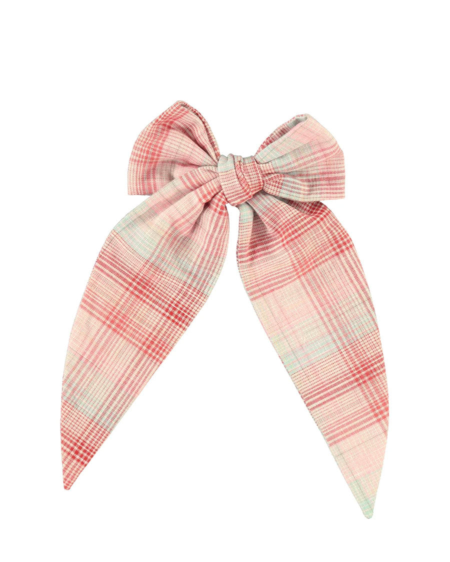 Sweet hand-tied Nicole big bow is crafted from 100% cotton in lovely pink checked cotton fabric. The bow is attached to an alligator clip. A timeless bow that embellishes each outfit with elegance and charm. Perfect match with Nicole dress or Nicole blouse.