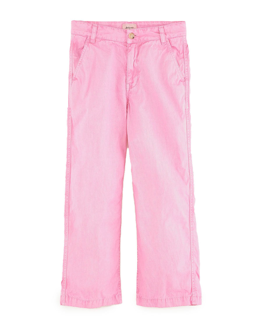 Relaxed trousers with a medium rise, wide straight legs and slanted pockets, made from a crisp cotton twill in beige with a strong fade-out finish.