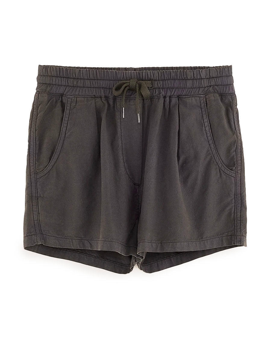 Relaxed shorts with an elastic waist and pull cord, made from supple Lyocell and cotton blend in black.