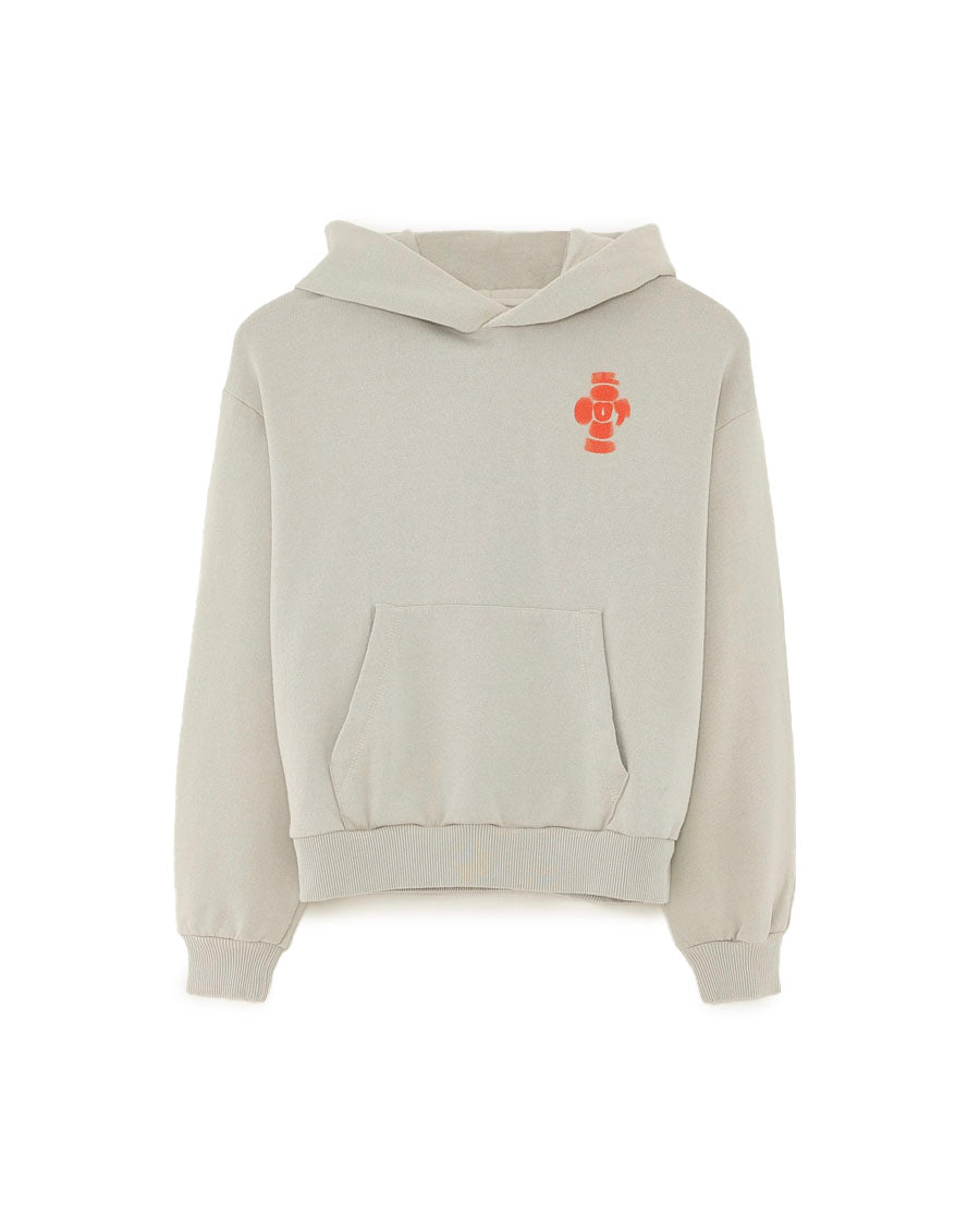 Relaxed hoodie with dropped shoulders and a kangaroo pocket, made from light sage green cotton fleece and finished with an "out loud" front print in blue.